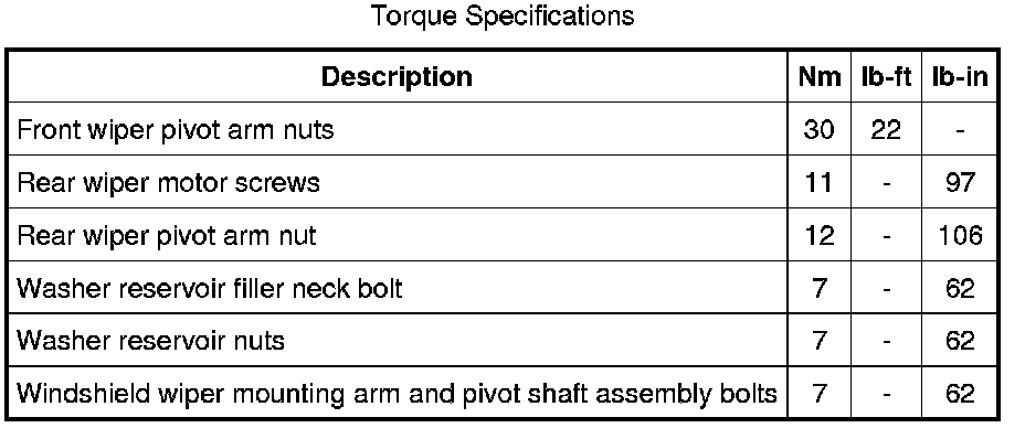 Torque Specifications