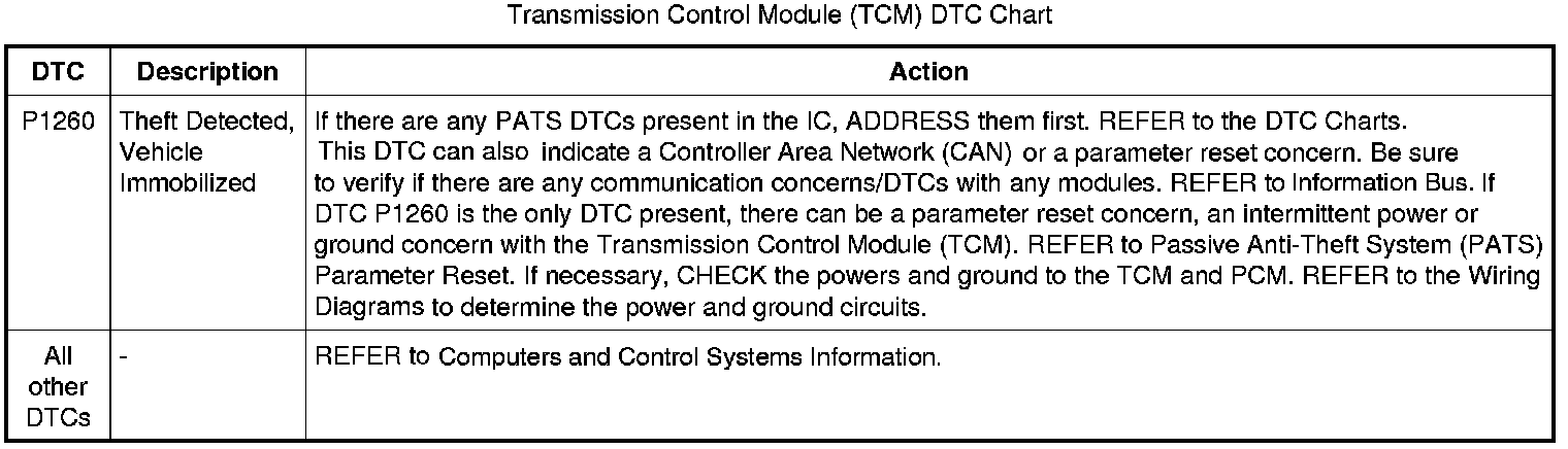 Transmission Control Module (TCM) DTC Chart