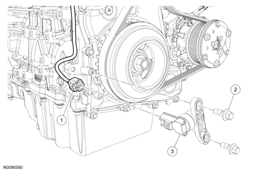 - Tighten the 2 CKP bolts to 7 Nm (62 lb-in).