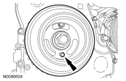3. Turn the crankshaft clockwise until the hole in the crankshaft pulley is in the 3 o'clock position.
