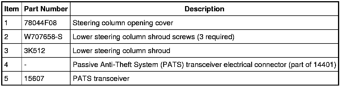 4. NOTE: Replacement of the PATS transceiver does not require the PATS keys to be programmed into the Instrument Cluster (IC) again.