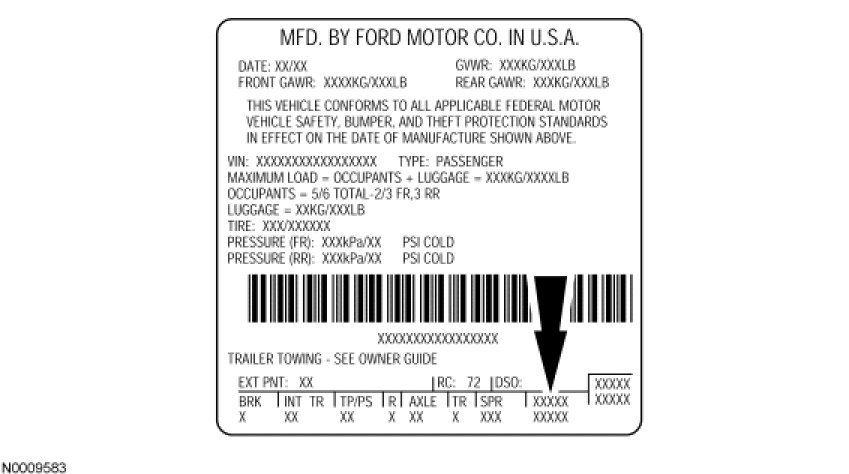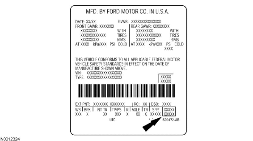 Base engine calibration information, sometimes referred to as the powertrain calibration, is located in the lower right corner of the vehicle certification label. Engine calibration information is limited to a maximum of 5 characters per line (2 lines maximum). Calibration information more than 5 characters long wrap to the second line of this field. Only the base calibration appears on this label. The revision level is no longer printed on the label, however, it can be found in the On-Line Automotive Service Information System (OASIS). For additional information on the vehicle certification label or engine calibration, refer to the Identification Codes.