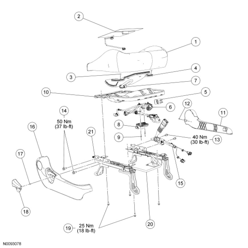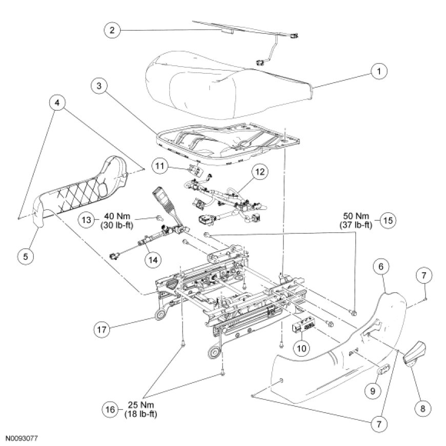 NOTE: Driver seat shown, passenger seat similar.