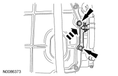 10. Position the transmission fluid cooler tube bracket and transmission fluid cooler tubes in place and install the 2 nuts.