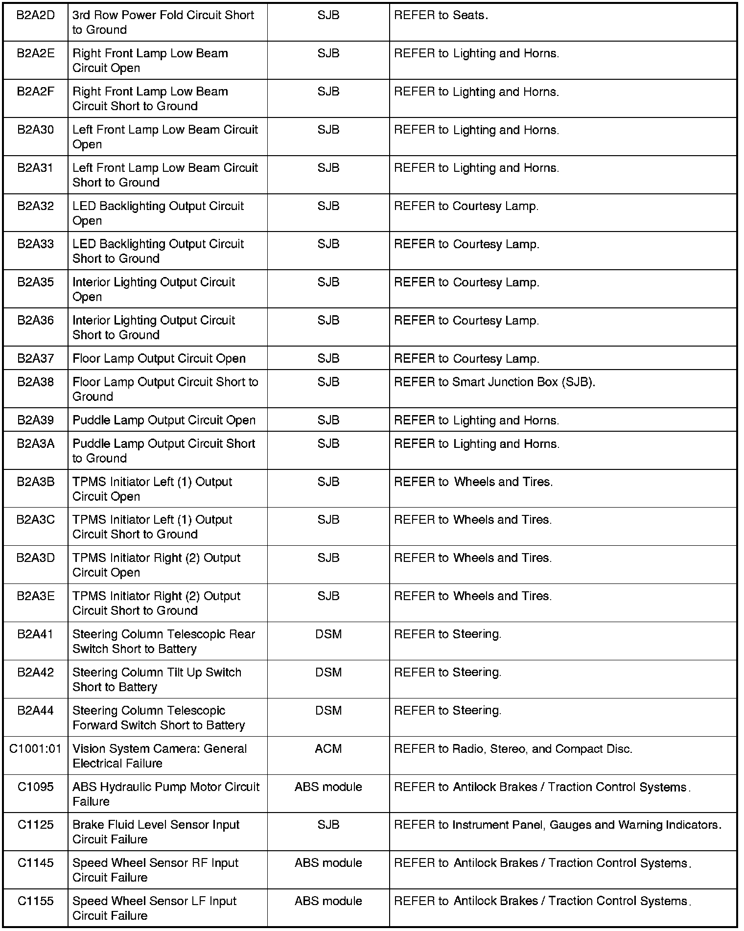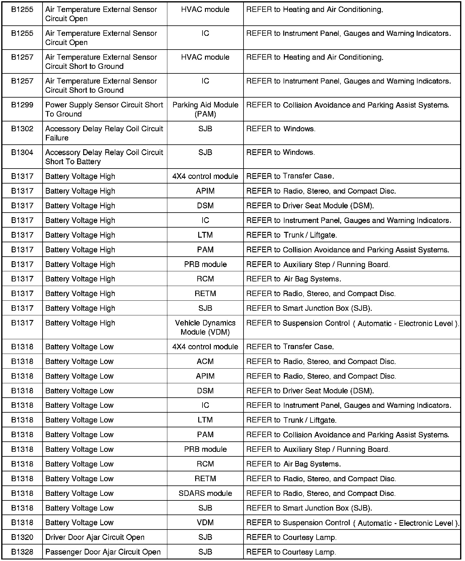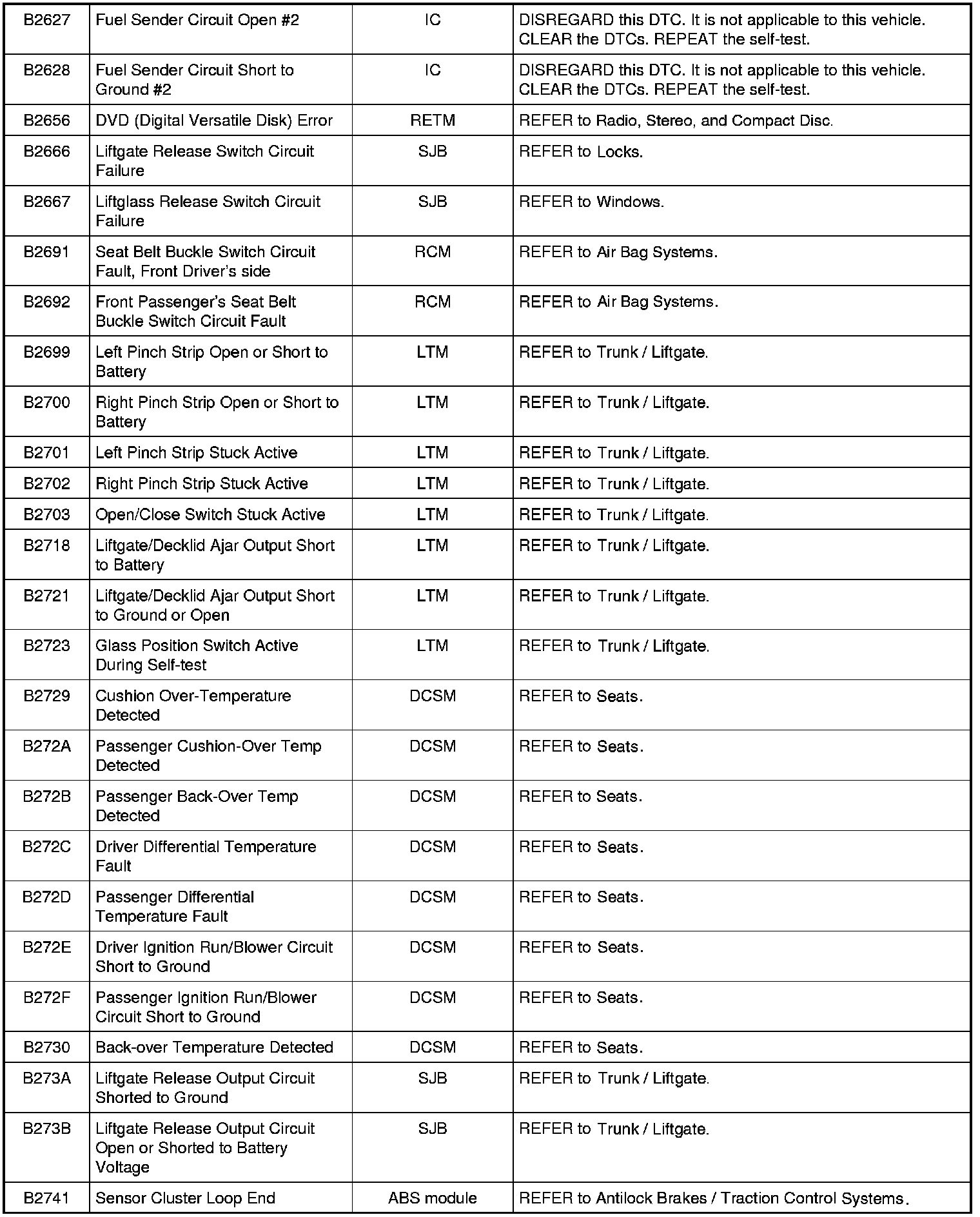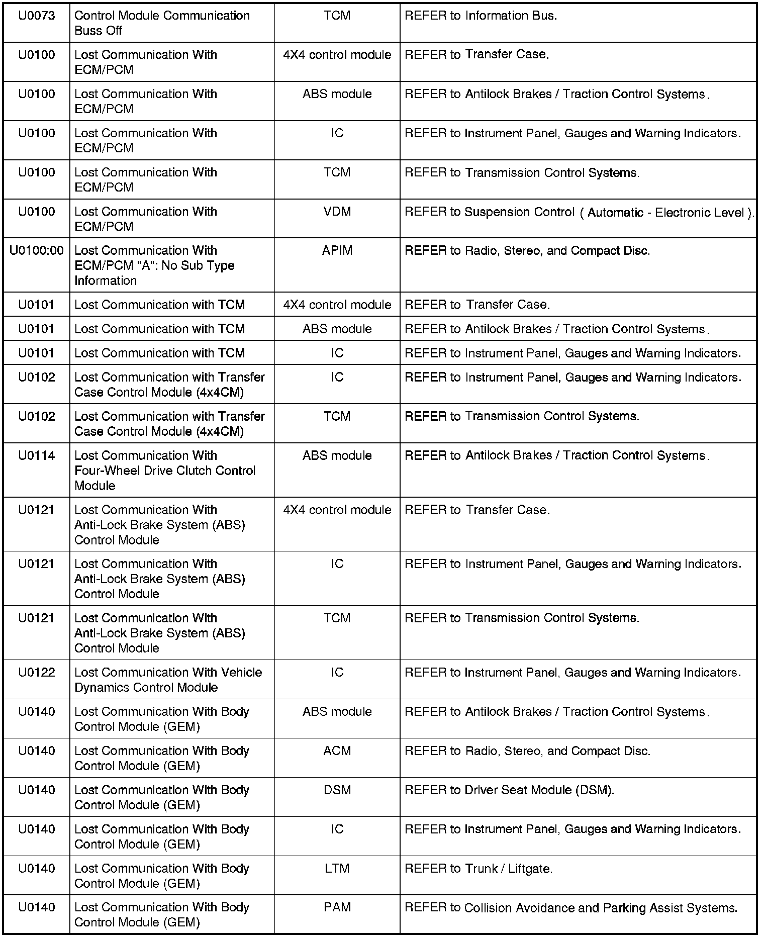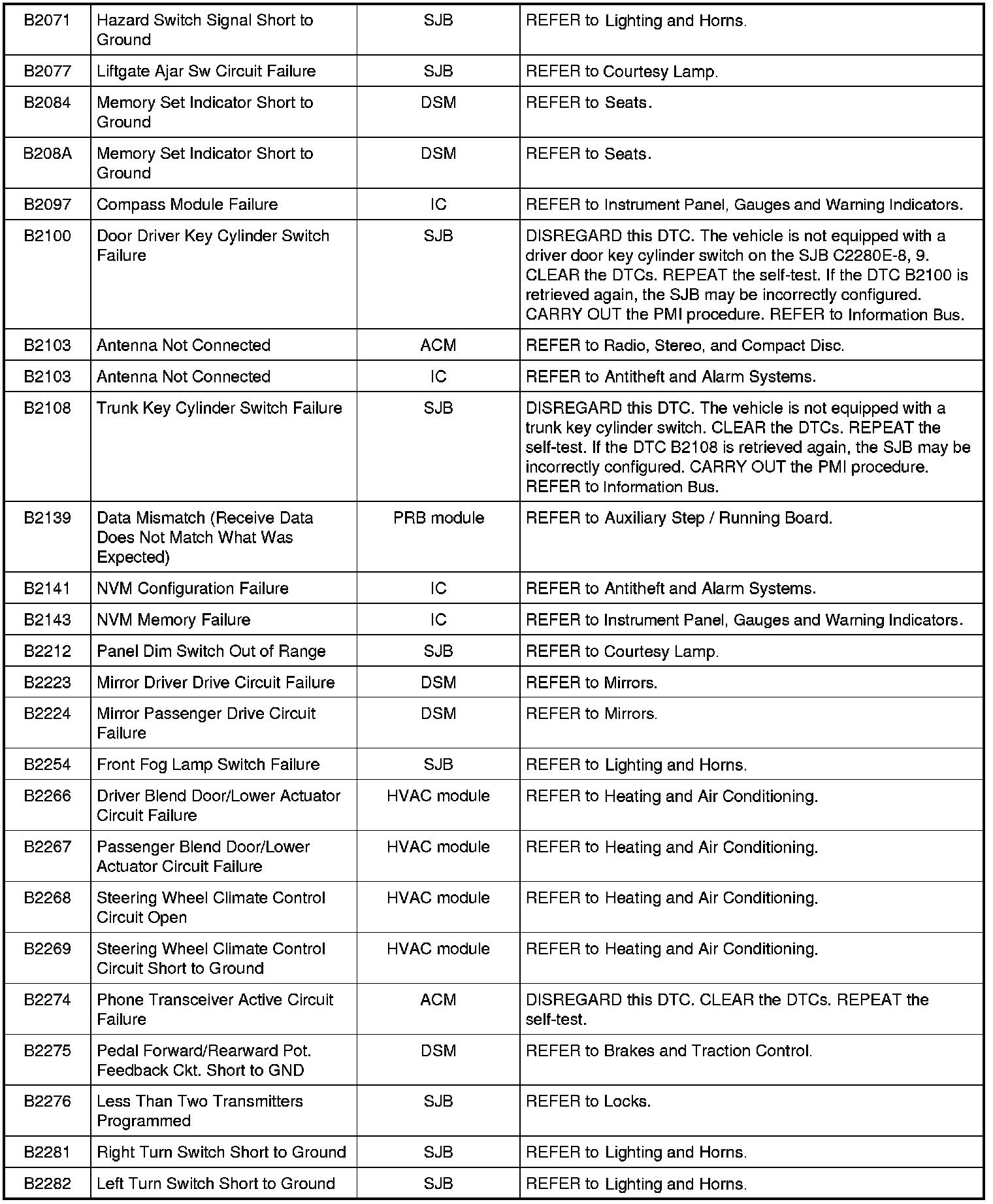 NOTE: Some of these modules utilize a 5-character DTC followed by a 2-character failure-type code. The failure-type code provides information about specific fault conditions such as opens, or shorts to ground. Continuous memory DTCs have an additional 2-character DTC status code suffix to assist in determining DTC history.