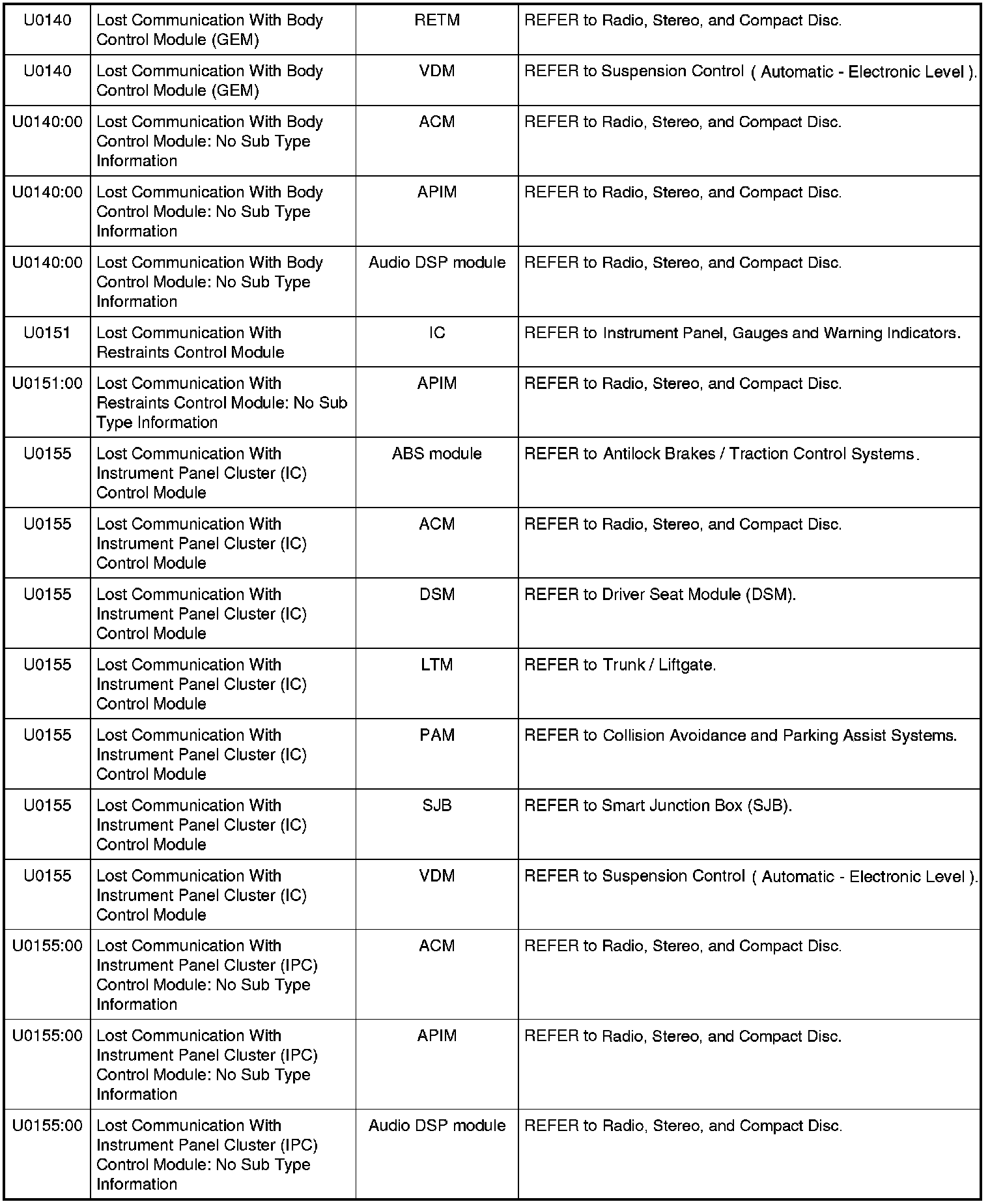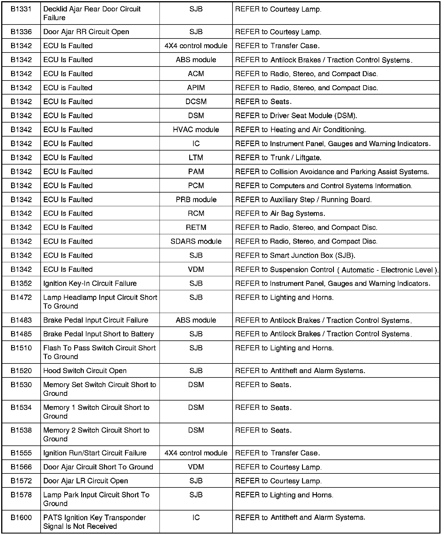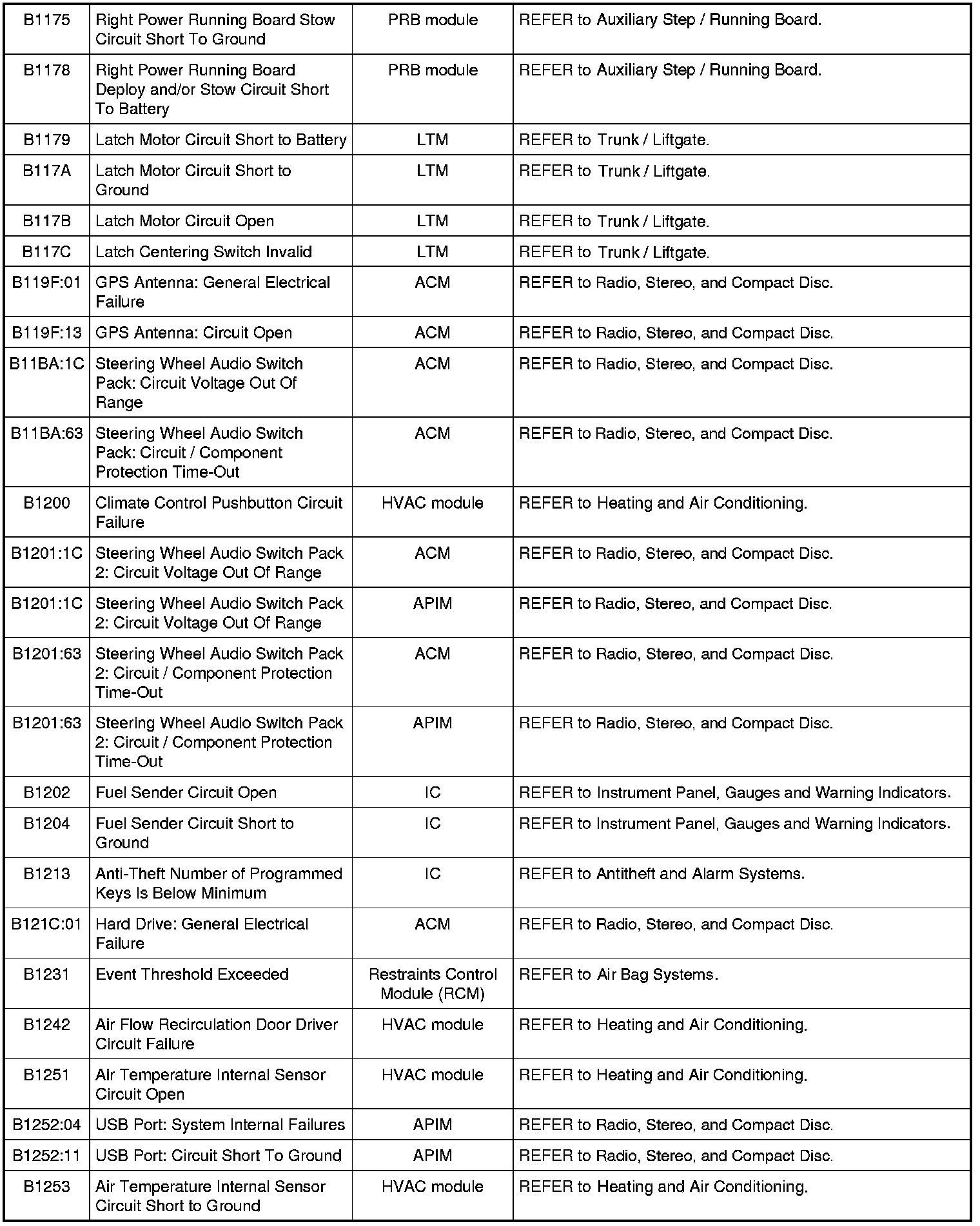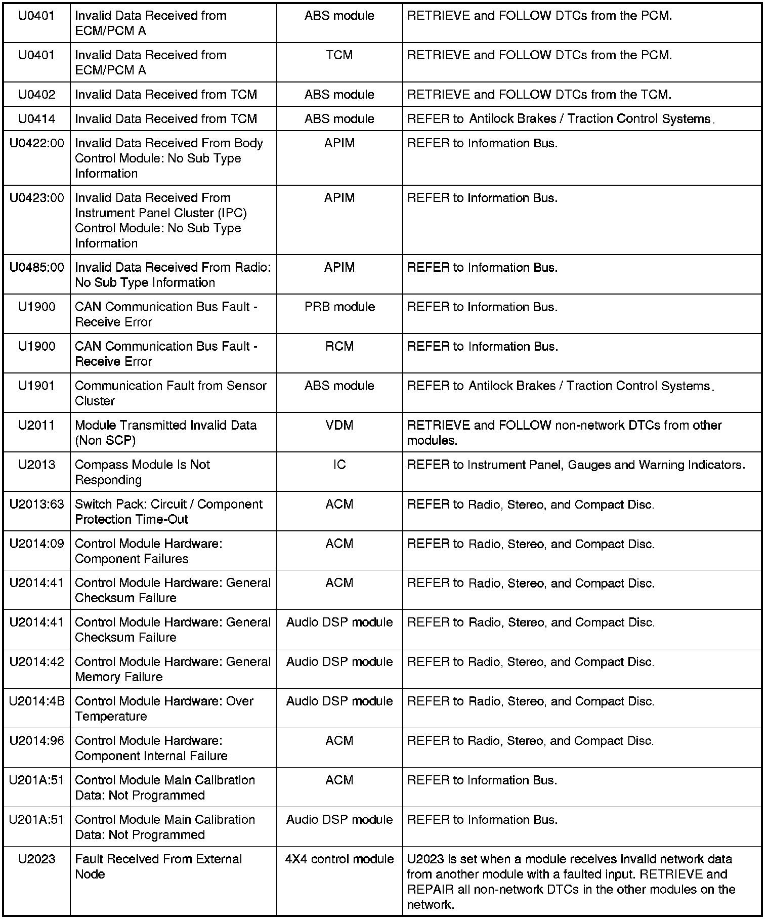 NOTE: Some of these modules utilize a 5-character DTC followed by a 2-character failure-type code. The failure-type code provides information about specific fault conditions such as opens, or shorts to ground. Continuous memory DTCs have an additional 2-character DTC status code suffix to assist in determining DTC history.