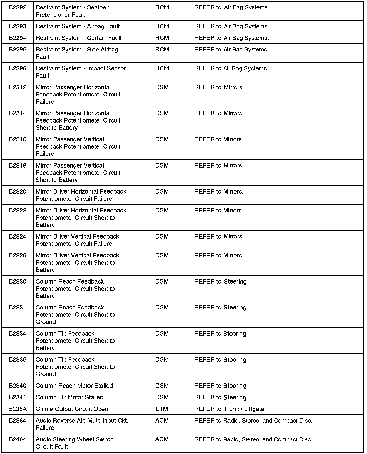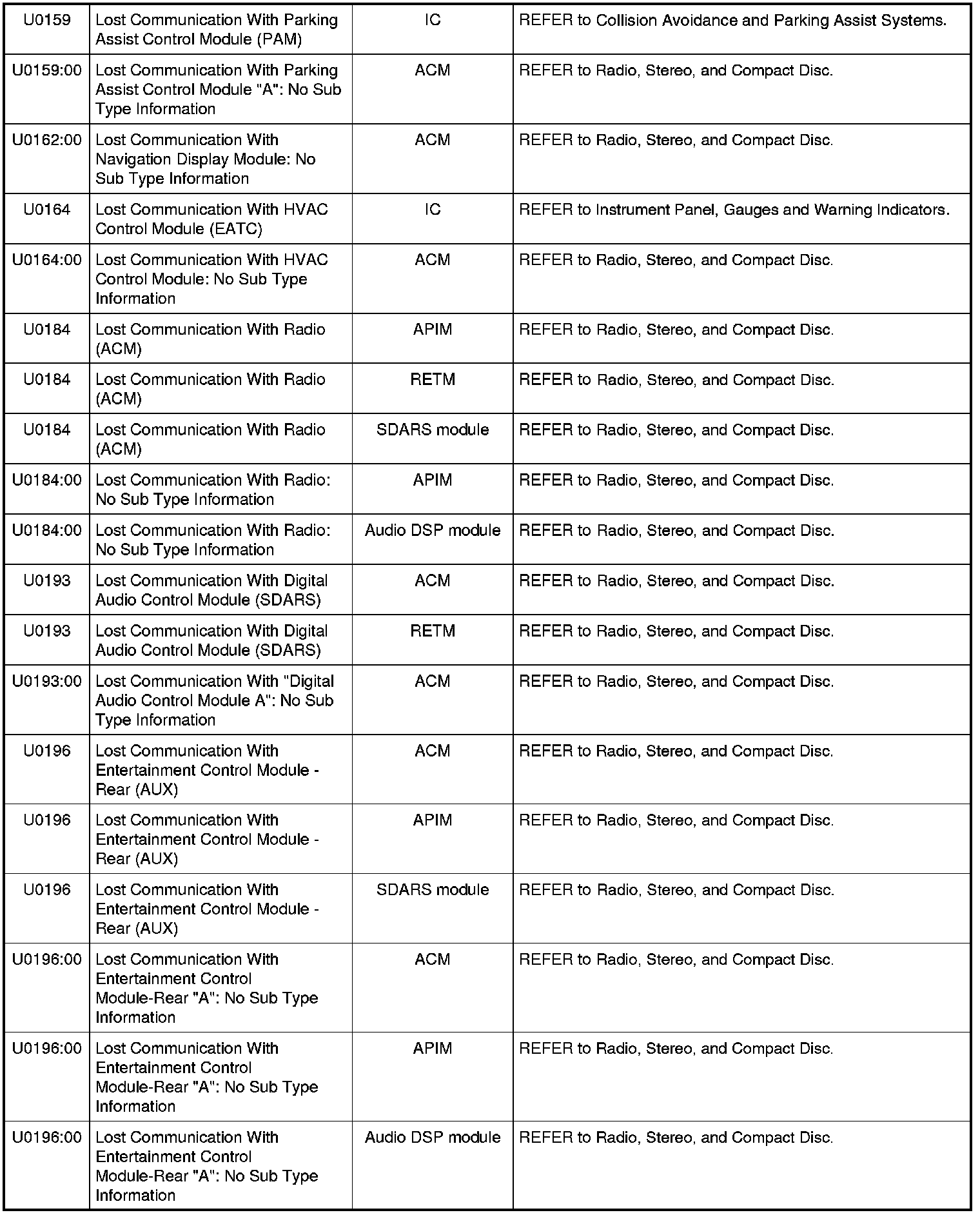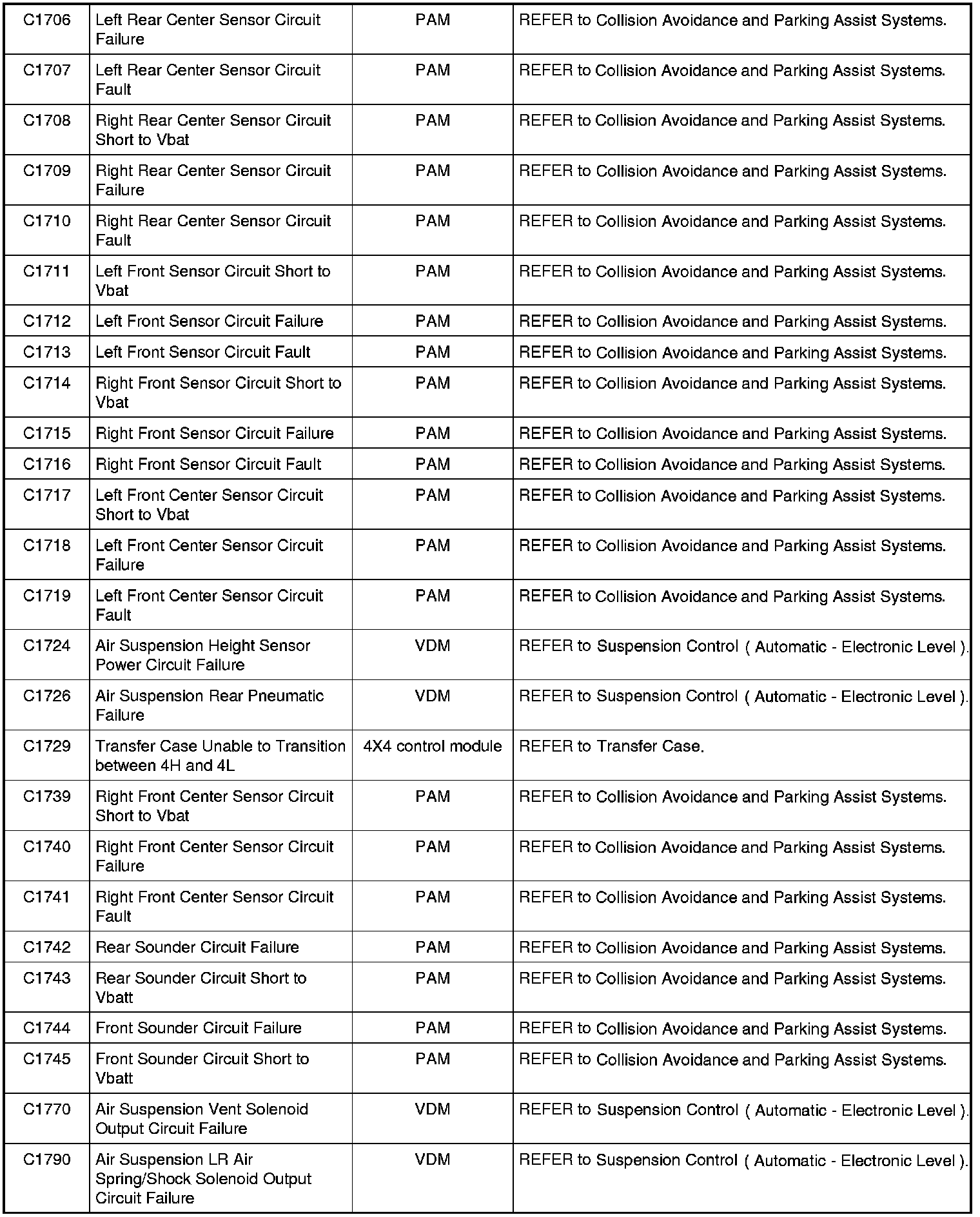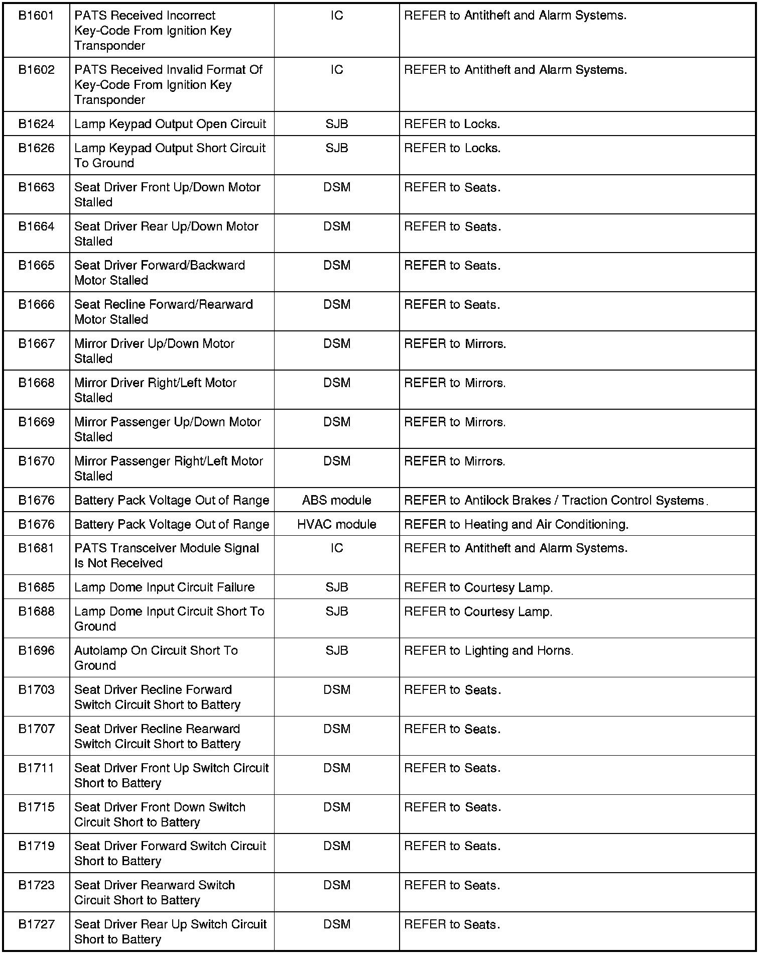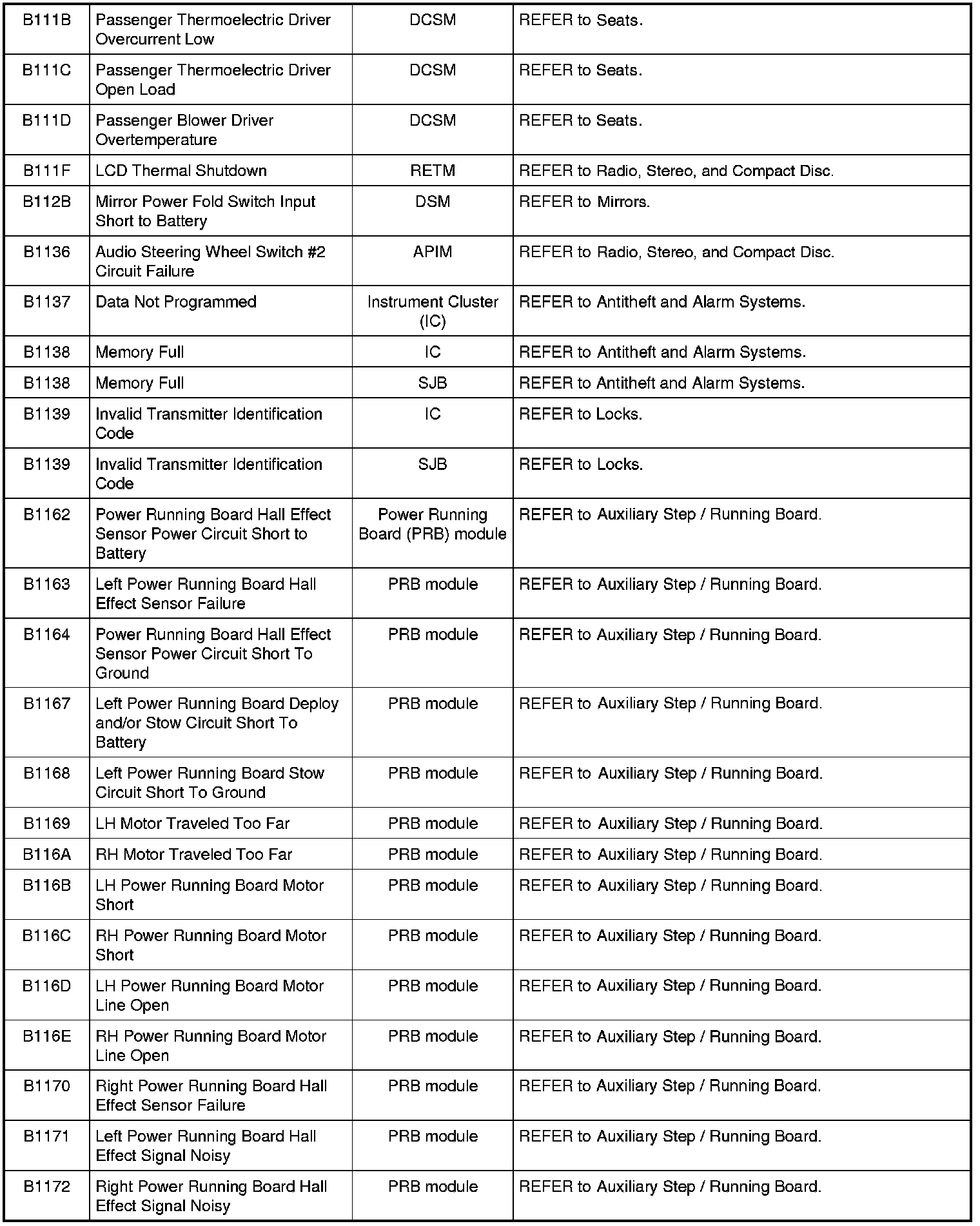 NOTE: Some of these modules utilize a 5-character DTC followed by a 2-character failure-type code. The failure-type code provides information about specific fault conditions such as opens, or shorts to ground. Continuous memory DTCs have an additional 2-character DTC status code suffix to assist in determining DTC history.