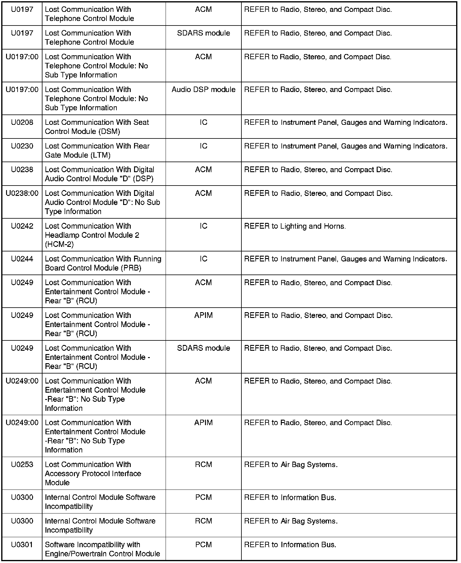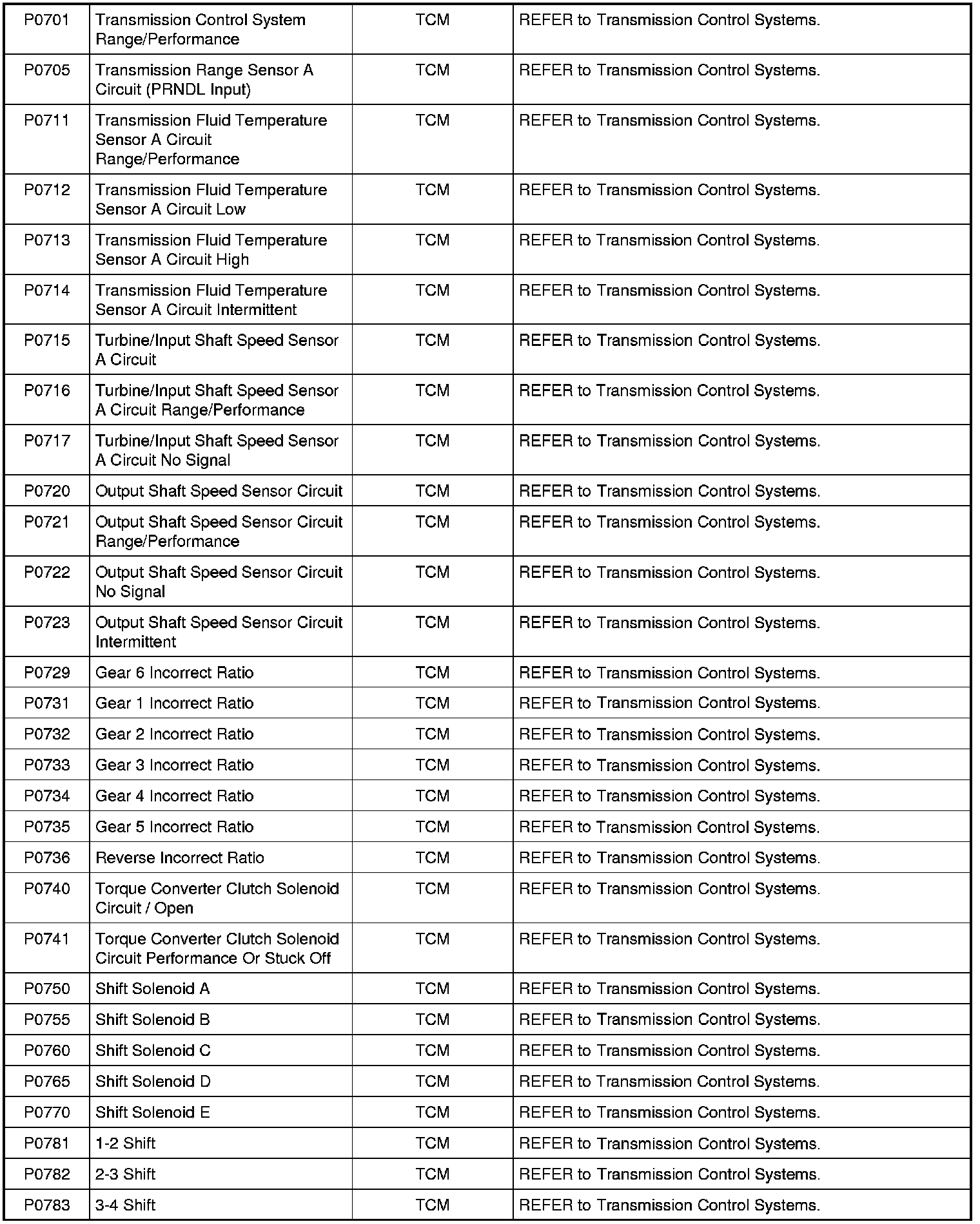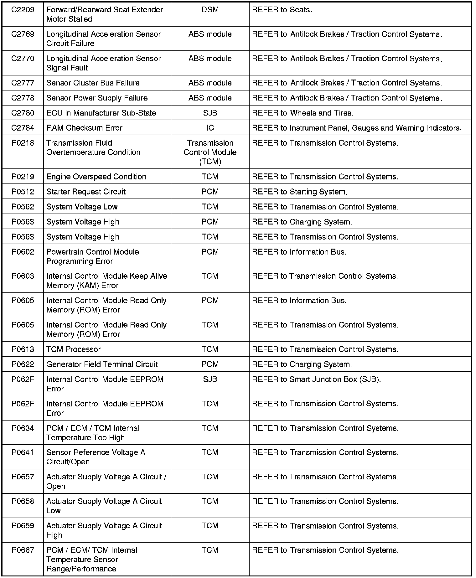 NOTE: Most powertrain (P-code) DTCs are diagnosed in Computers and Control Systems Information. If the P-code retrieved is not listed below, refer to Computers and Control Systems Information to continue diagnostics.