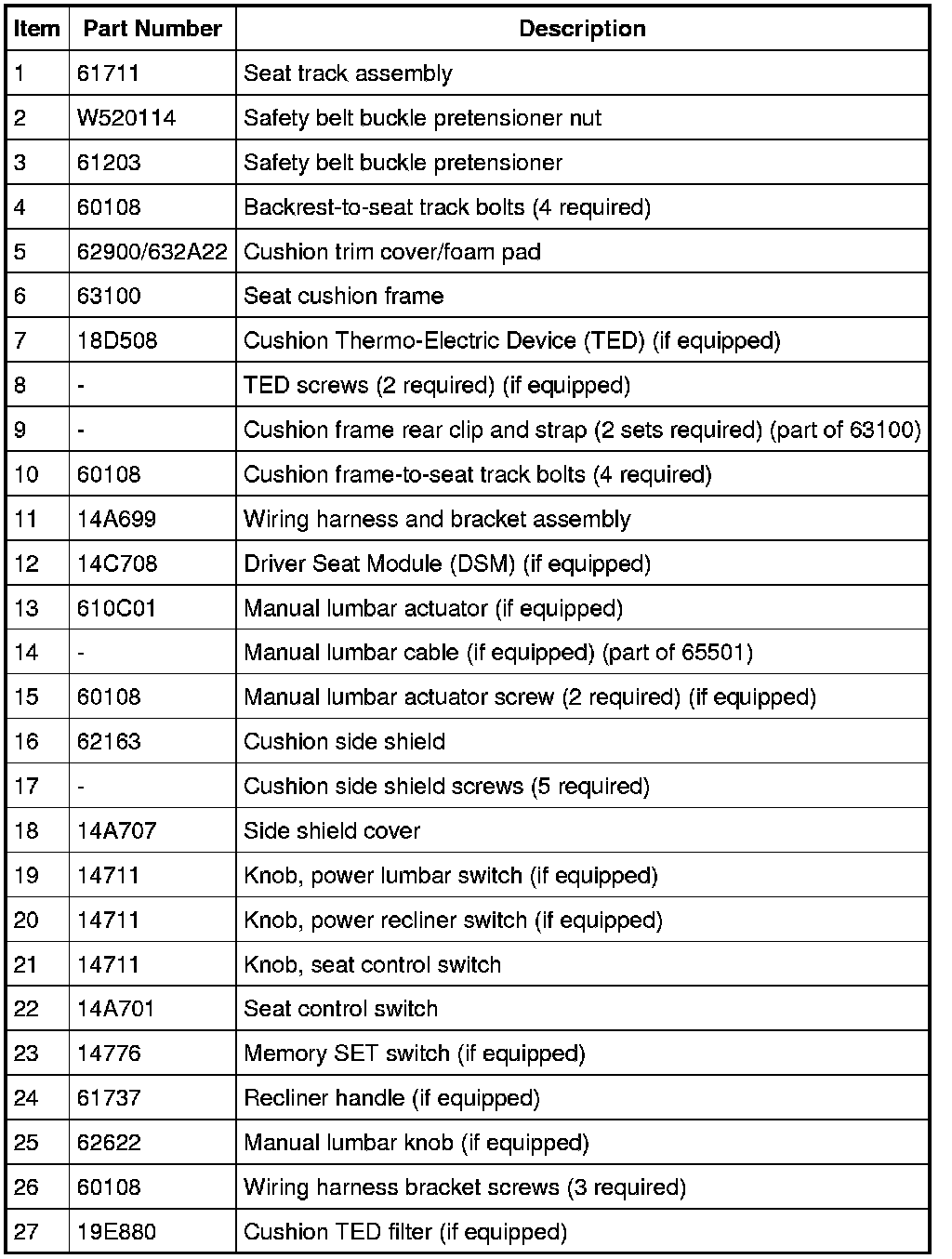Seat - Exploded View, Front