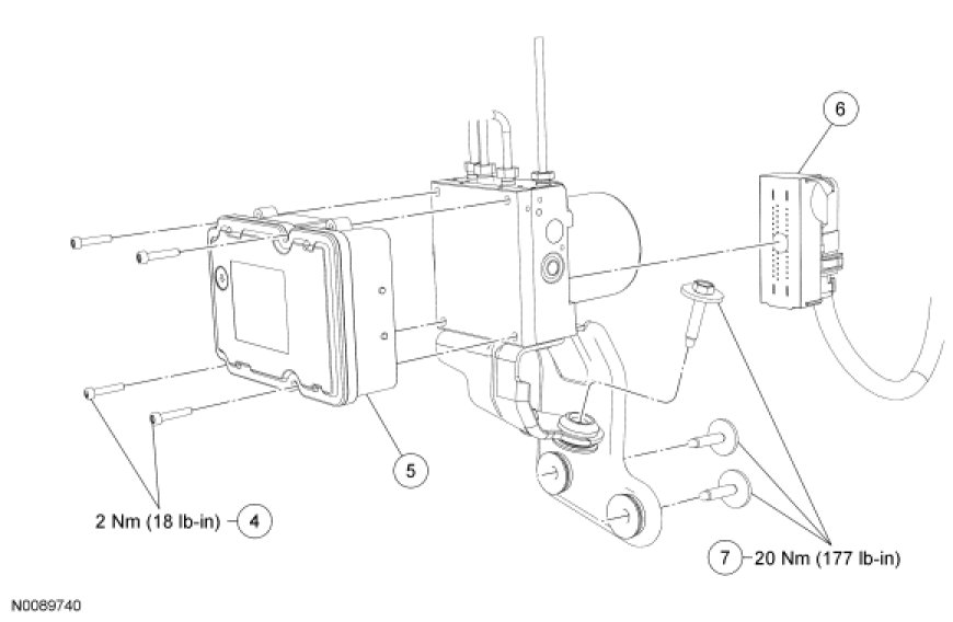 NOTE: When installing a new ABS module/HCU assembly, it must be configured (either by download/upload or uploading the as-built data method).