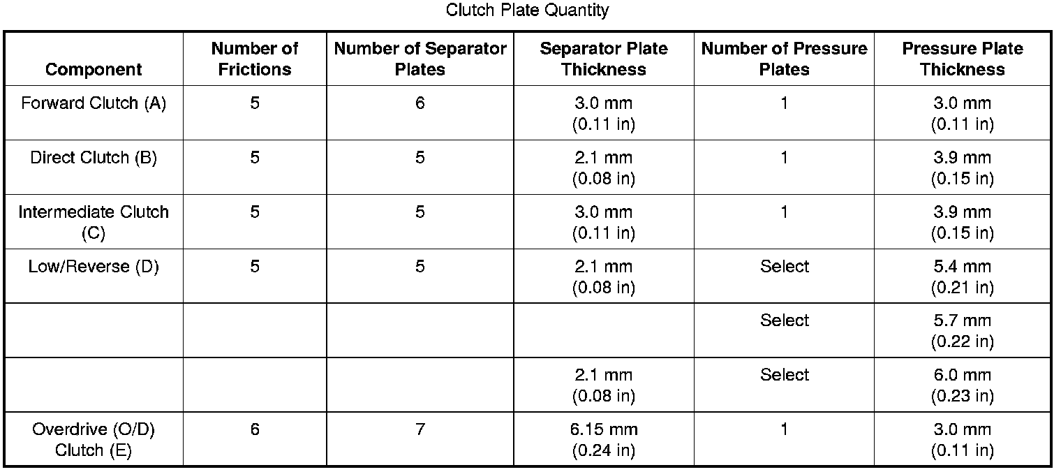Clutch Application Chart: