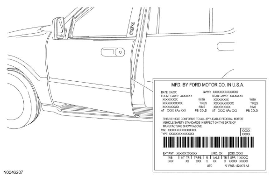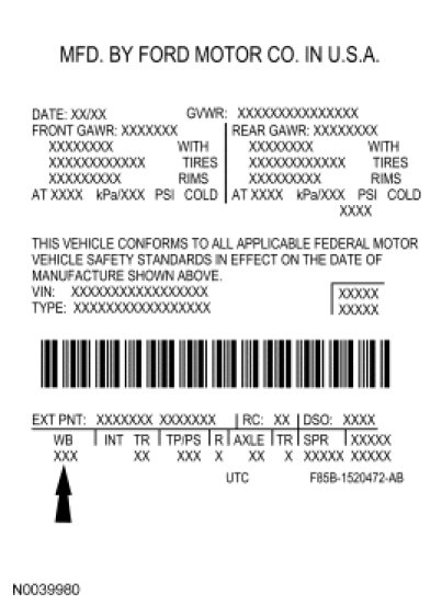 The Vehicle Certification (VC) label contains information on the manufacturer name, the month and year of manufacture, the certification statement and the Vehicle Identification Number (VIN). This label also includes Gross Vehicle Weight Rating (GVWR) information.