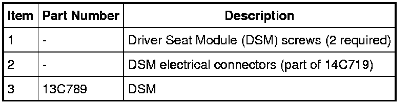 NOTE: Prior to the removal of the module, it is necessary to upload the module configuration information to a scan tool. This information must be downloaded into the new Driver Seat Module (DSM) after installation.