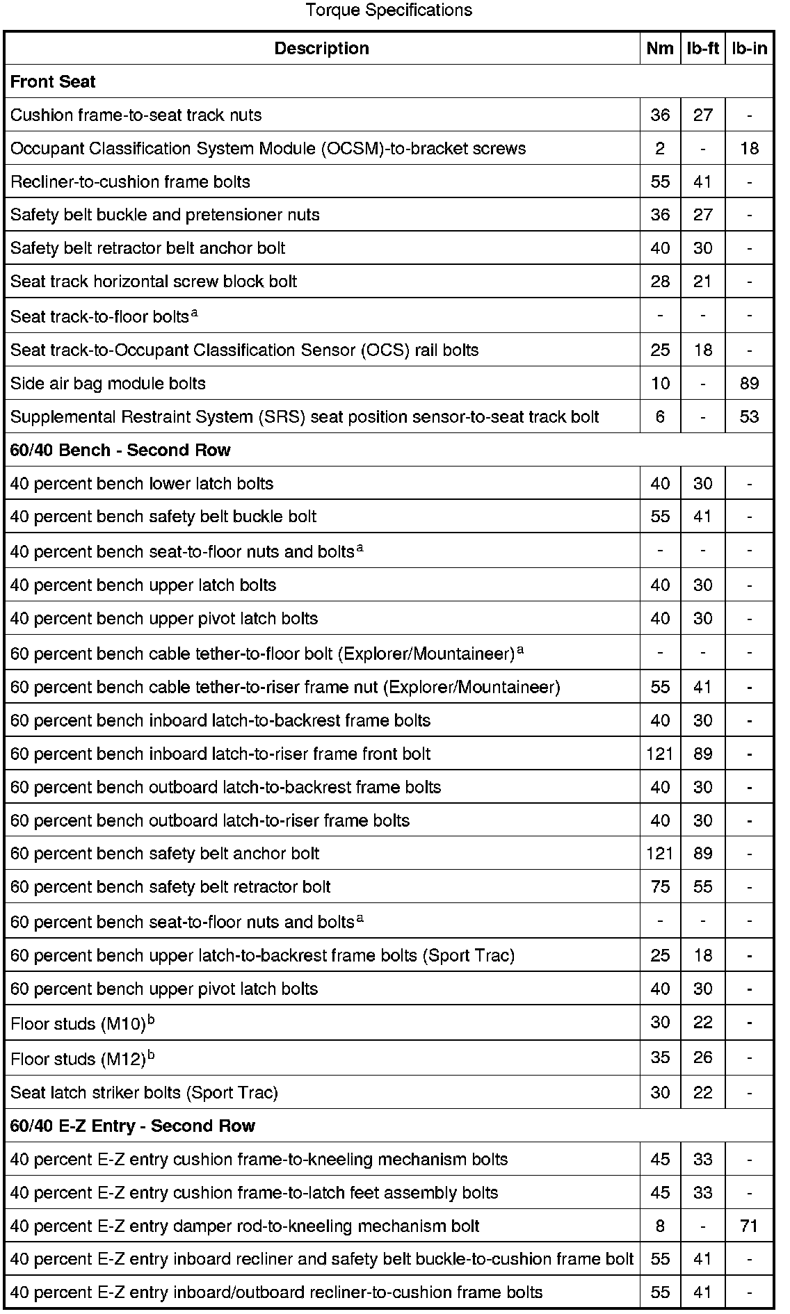 Torque Specifications