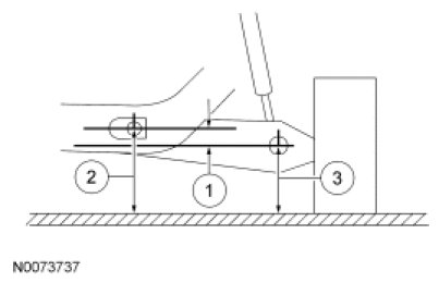 3. Subtract measurement 3 from measurement 2 to obtain the rear ride height.