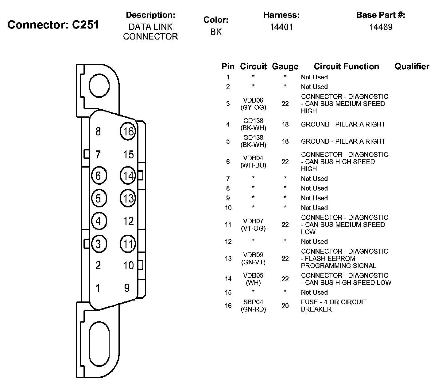 Data Link Connector: Diagrams