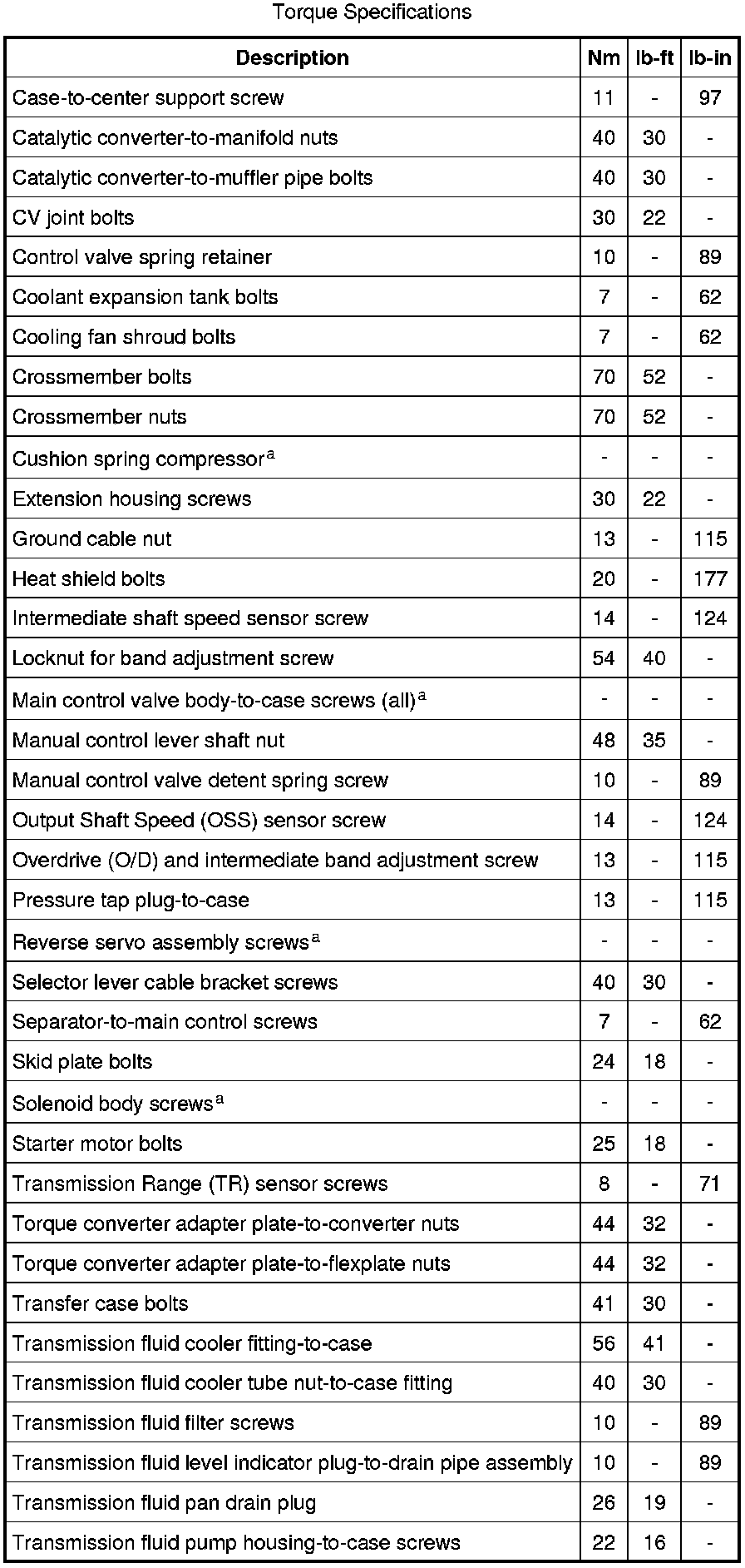 Torque Specifications