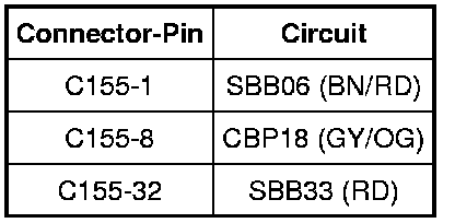 - Measure the resistance between the ABS module C155-16, circuit GD120 (BK/GN) harness side and ground.