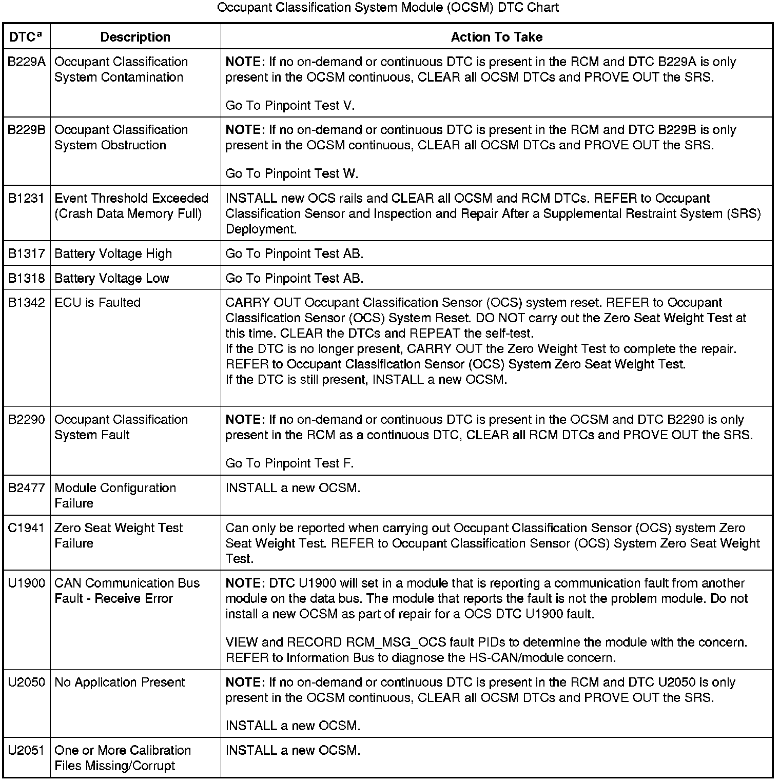 The DTCs can be retrieved from the RCM and the OCSM with a scan tool via the DLC.