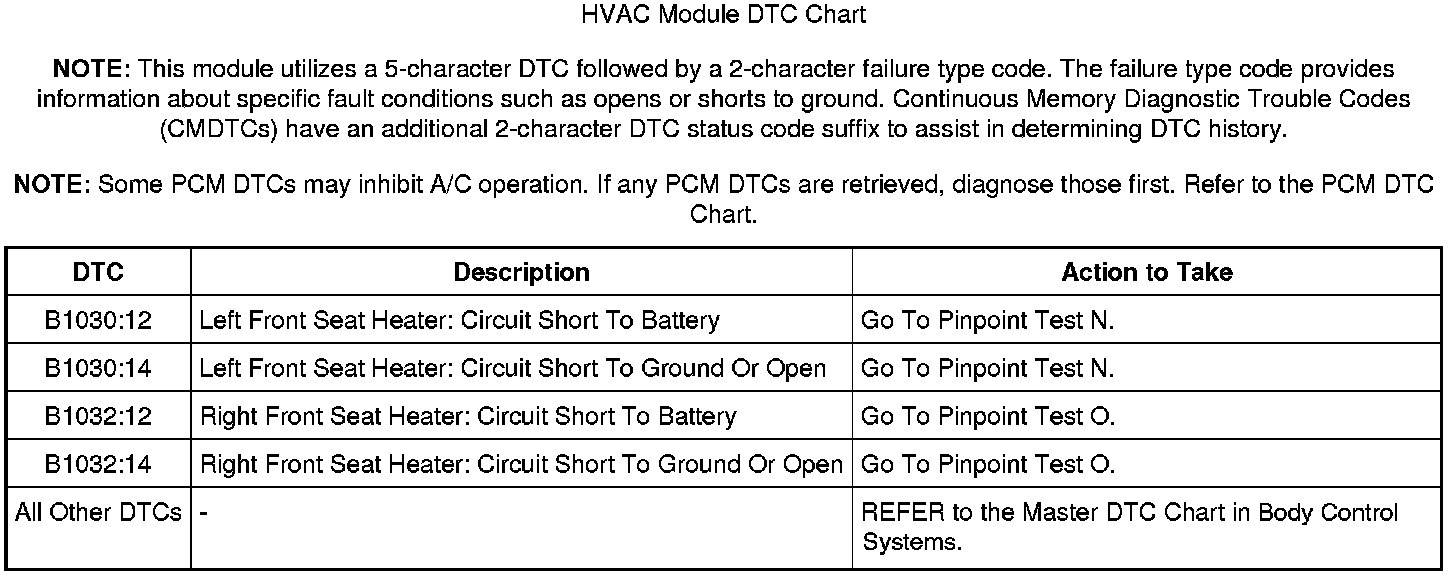 HVAC Module DTC Chart