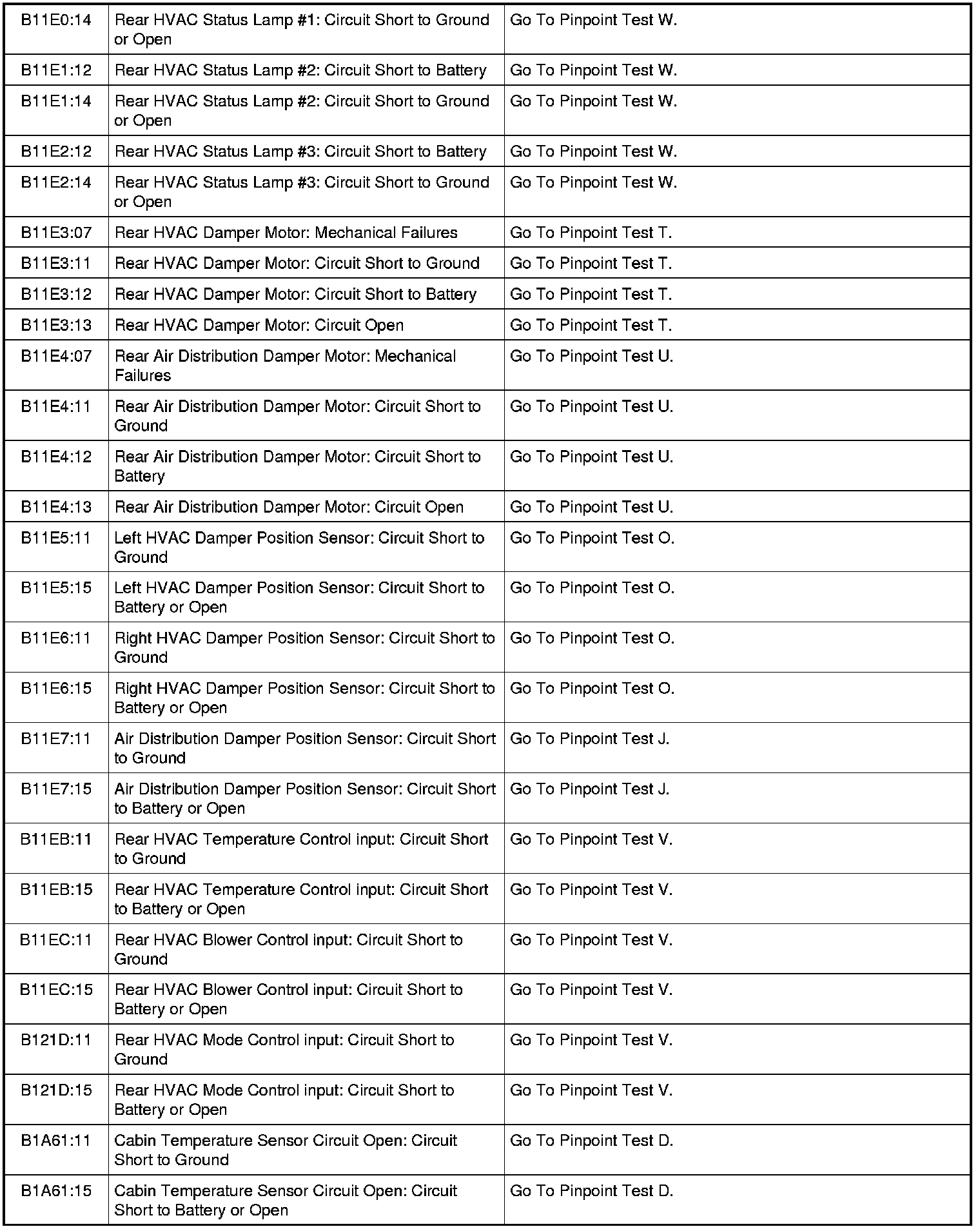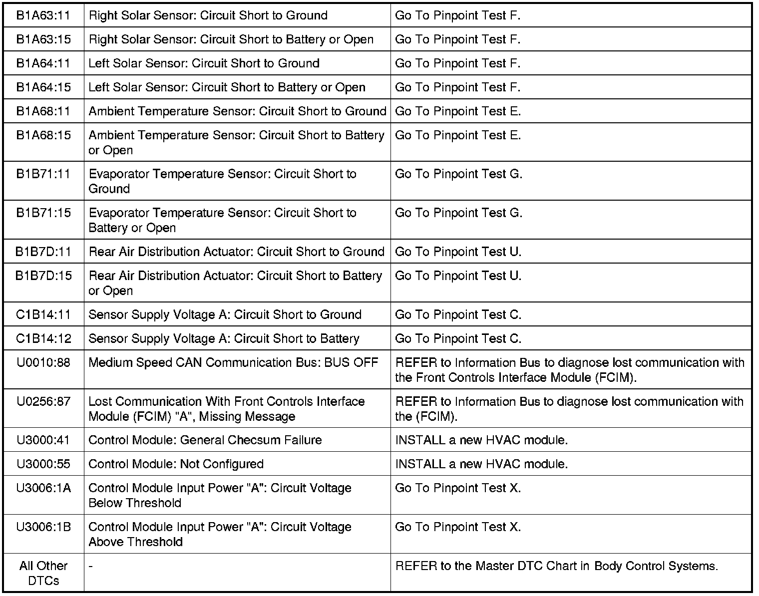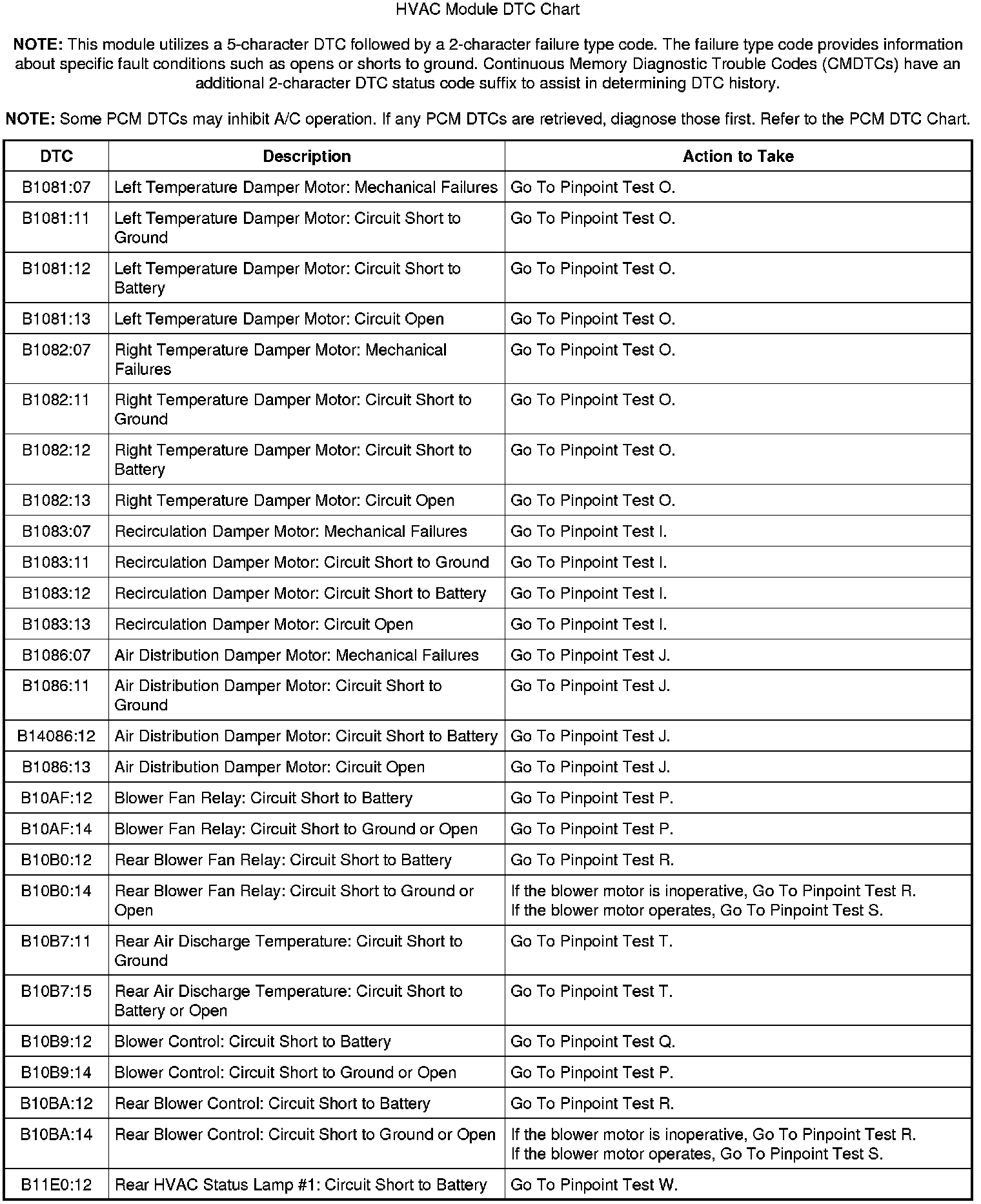 HVAC Module DTC Chart
