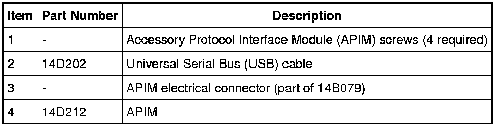 1. NOTE: It is necessary to record the current Accessory Protocol Interface Module (APIM) software and hardware level when a new APIM is being installed to make sure that the new component is the same version as the component being replaced.