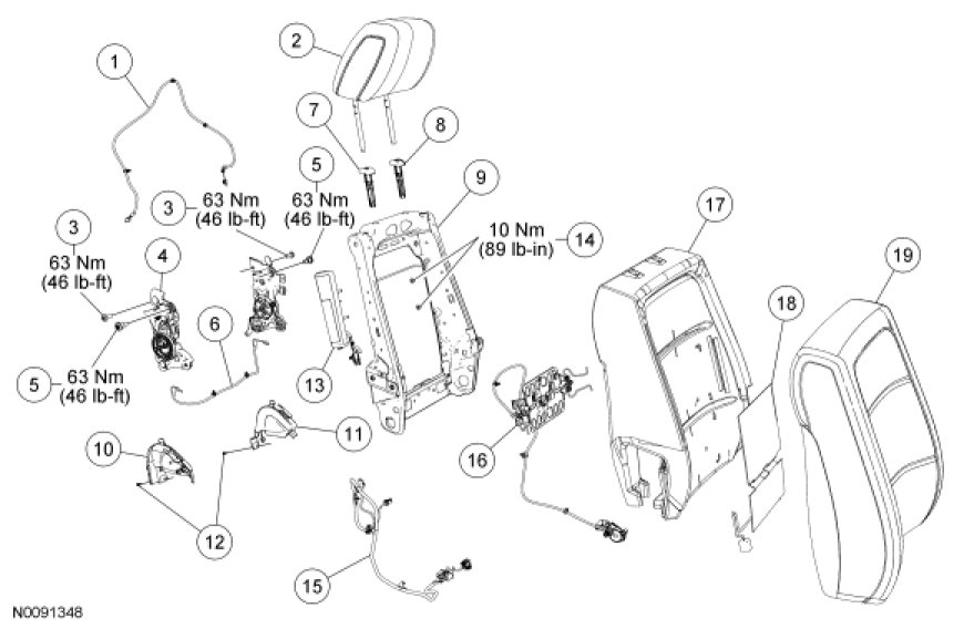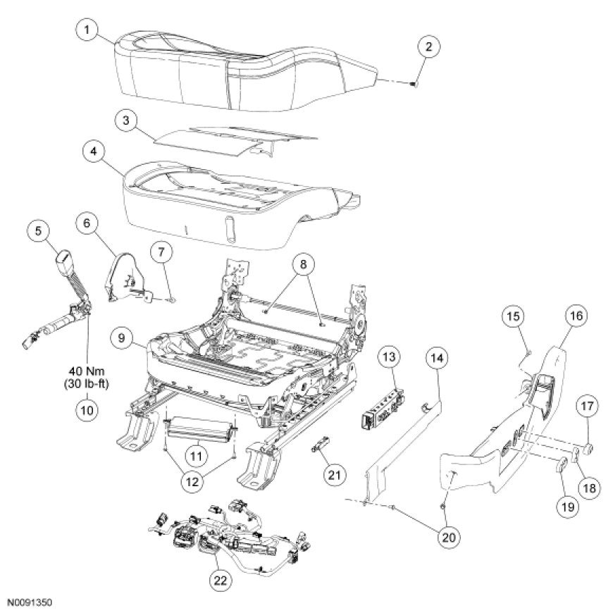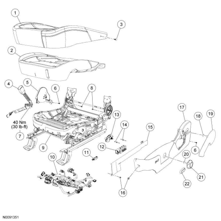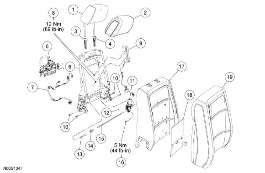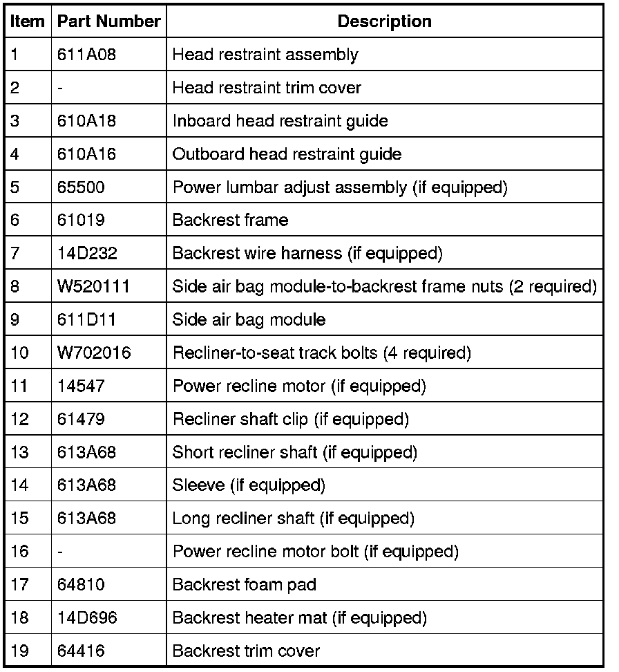 NOTE: Refer to Seat Backrest - Front, Without Fold Flat Seat Backrest - Front, Without Fold Flat for recliner-to-seat track bolt tightening sequence and torque specification.