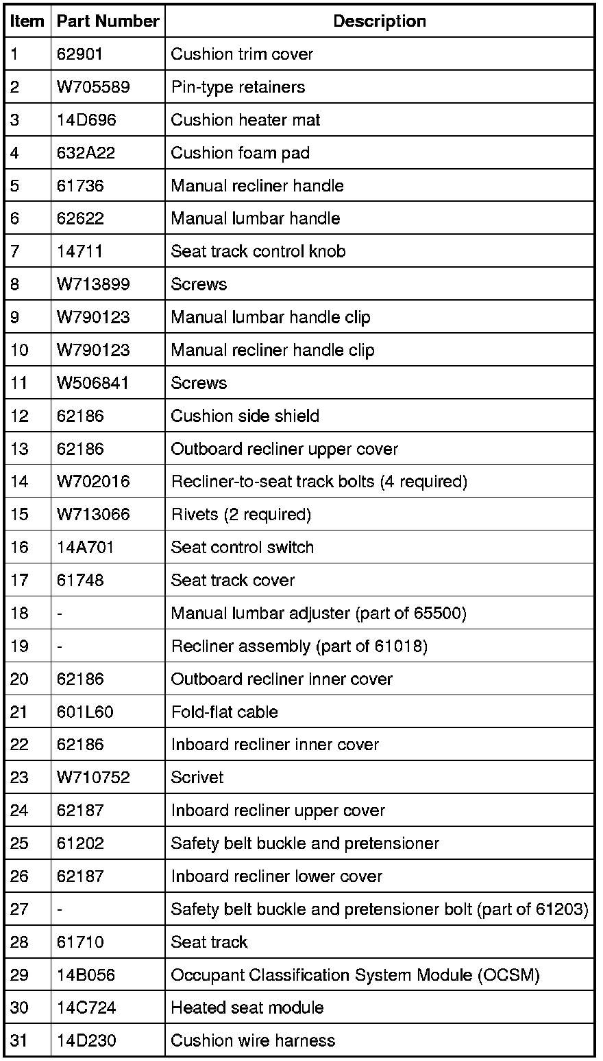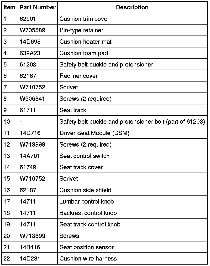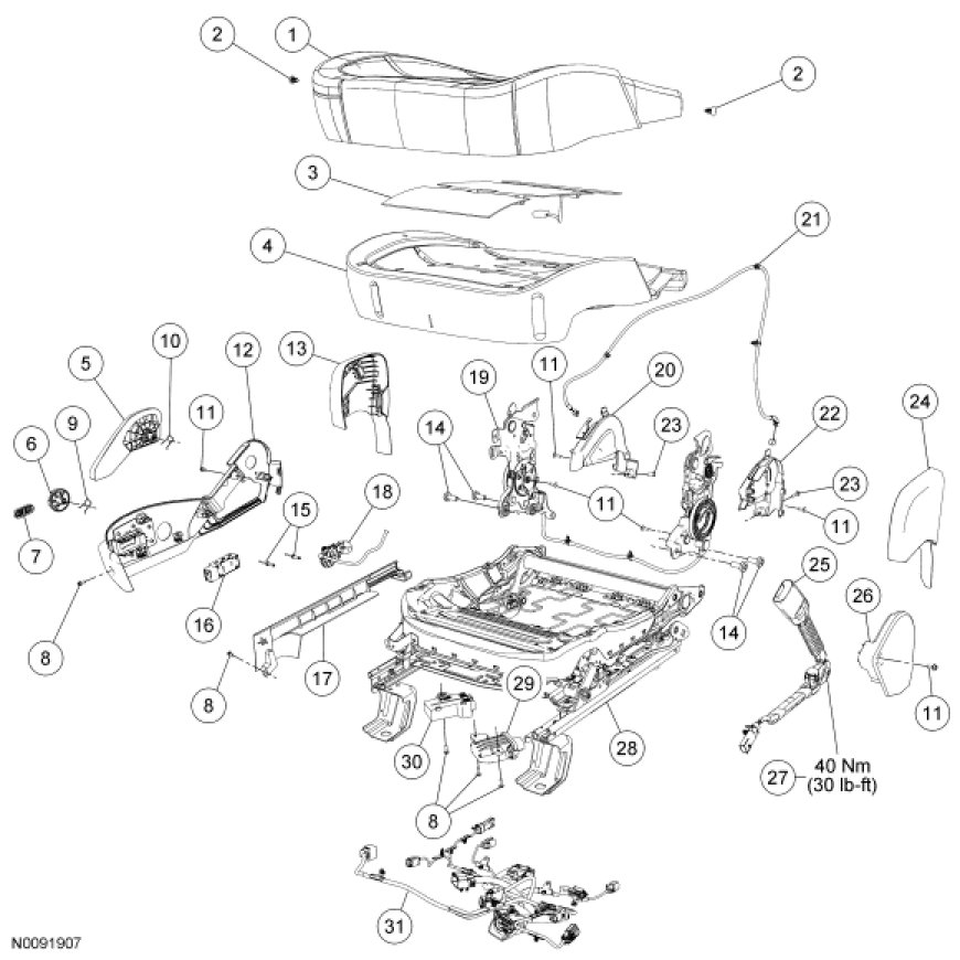 Seat - Exploded View, Front