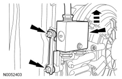 26. NOTICE: Make sure that the park pawl actuator rod does not become disengaged from the park pawl and the abutment, or transaxle removal and disassembly is required to reinstall the actuator rod.