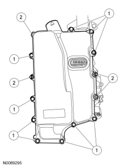 13. NOTICE: Inspect the 20-pin solenoid body connector seal to make sure that the seal is on the inside of the main control cover or a transmission fluid leak will occur.