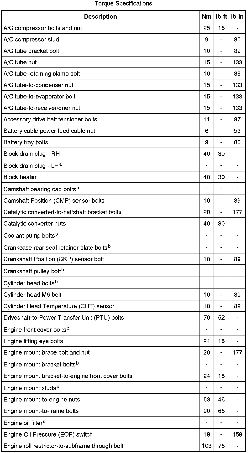 Torque Specifications