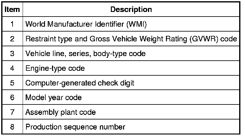 The eighth VIN position identifies the engine type, displacement and number of cylinders.
