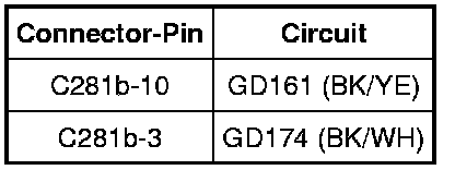 - Measure the resistance between the 4X4 control module C281a-9, circuit VDB05 (WH), harness side and the DLC C251-14, circuit VDB05 (WH), harness side.