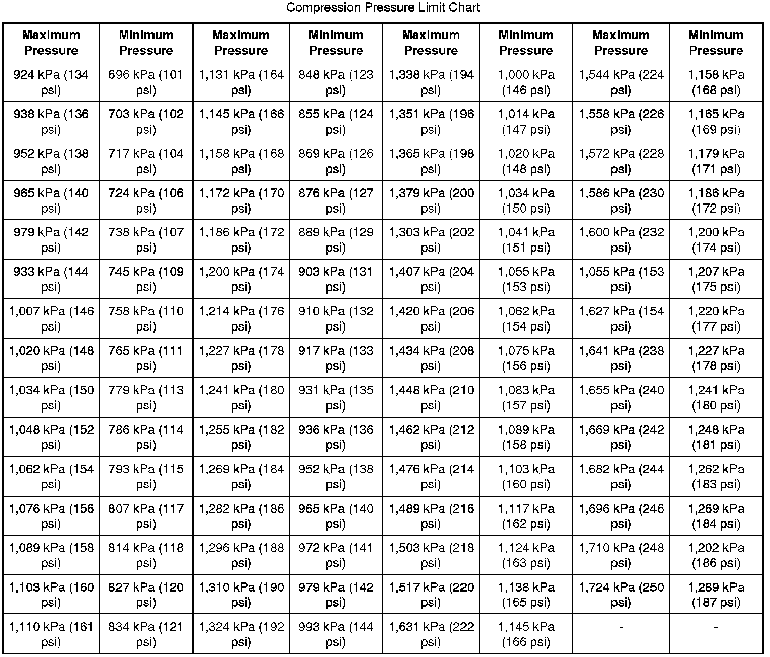 Use the Compression Pressure Limit Chart when checking cylinder compression so that the lowest reading is within 75% of the highest reading.