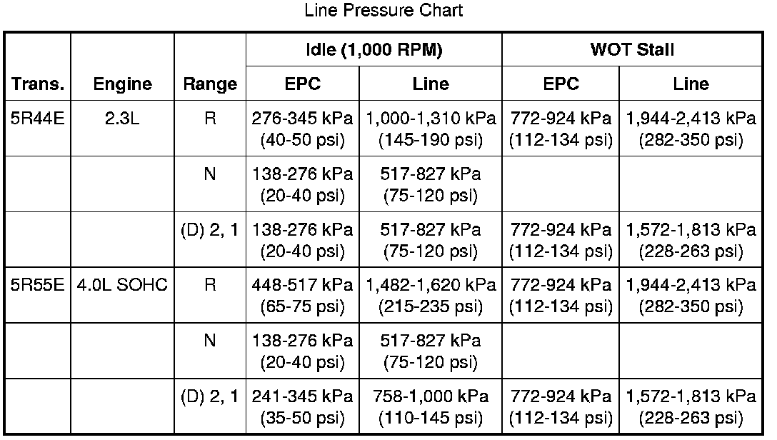 Line Pressure Chart: