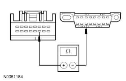 - Measure the resistance between the PAM C2023-3, circuit VDB06 (GY/OG), harness side and the DLC C251-3, circuit VDB06 (GY/OG), harness side.