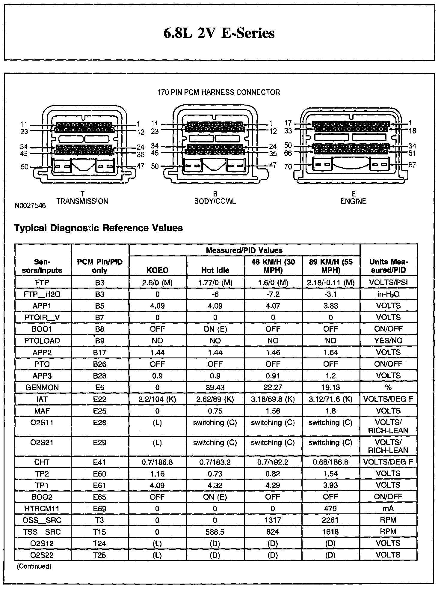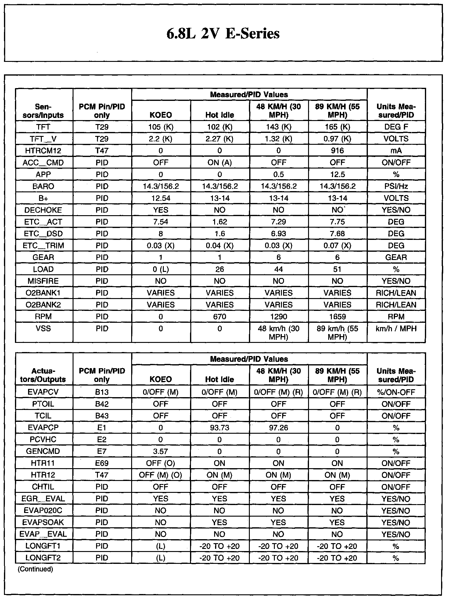 The Typical Diagnostic Reference Value Charts do not display fault parameter identifications (PIDs). These are PIDs which indicate a hard fault with the circuit. They display a value of YES or NO and are PIDs ending with the letter F.