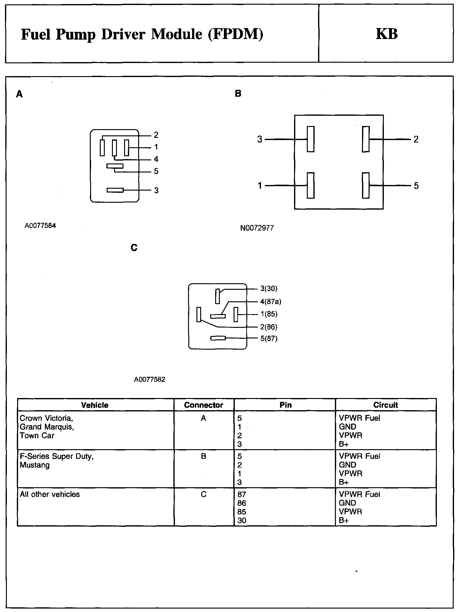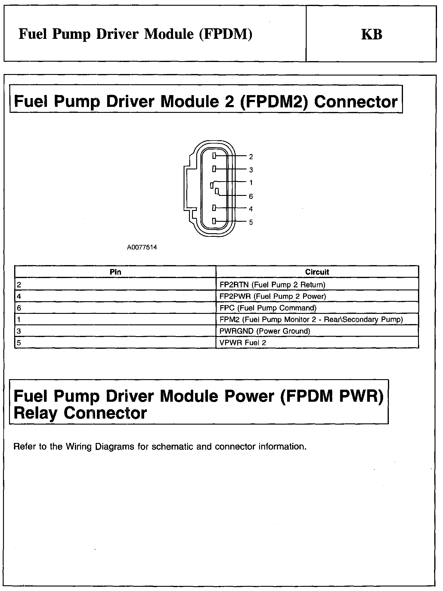 PINPOINT TEST KB: FUEL PUMP DRIVER MODULE (FPDM)Warning And Fuel Pump Driver Module (FPDM) Connector: