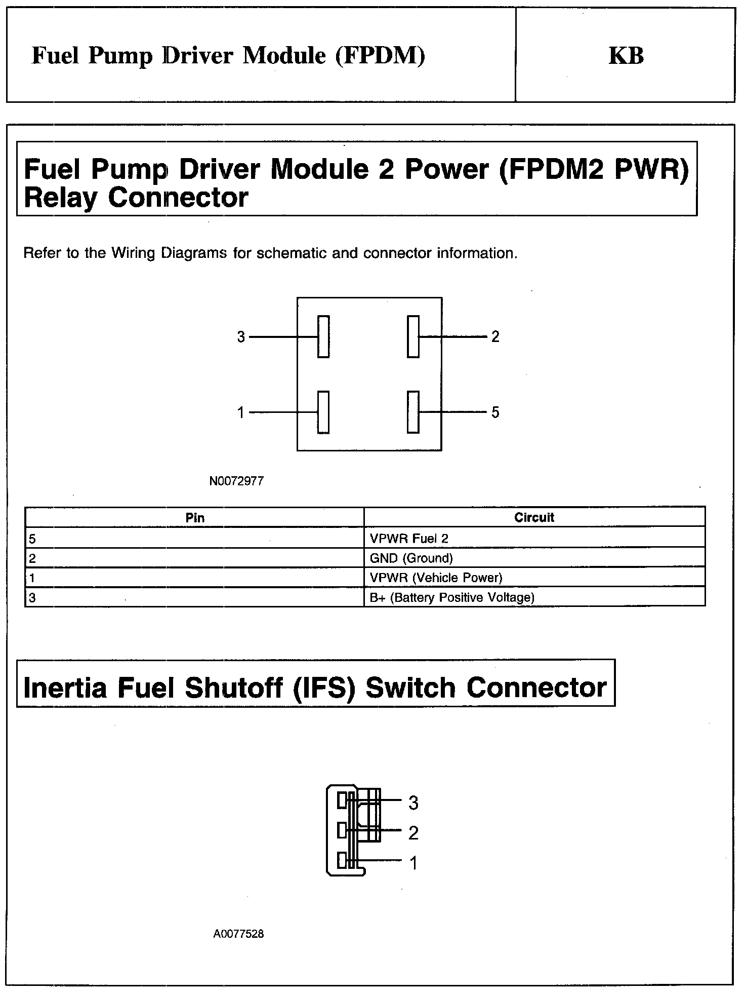 Fuel Pump Driver Module 2 Power (FPDM2 PWR) Relay Connector And Inertia Fuel Shutoff (IFS) Switch Connector: