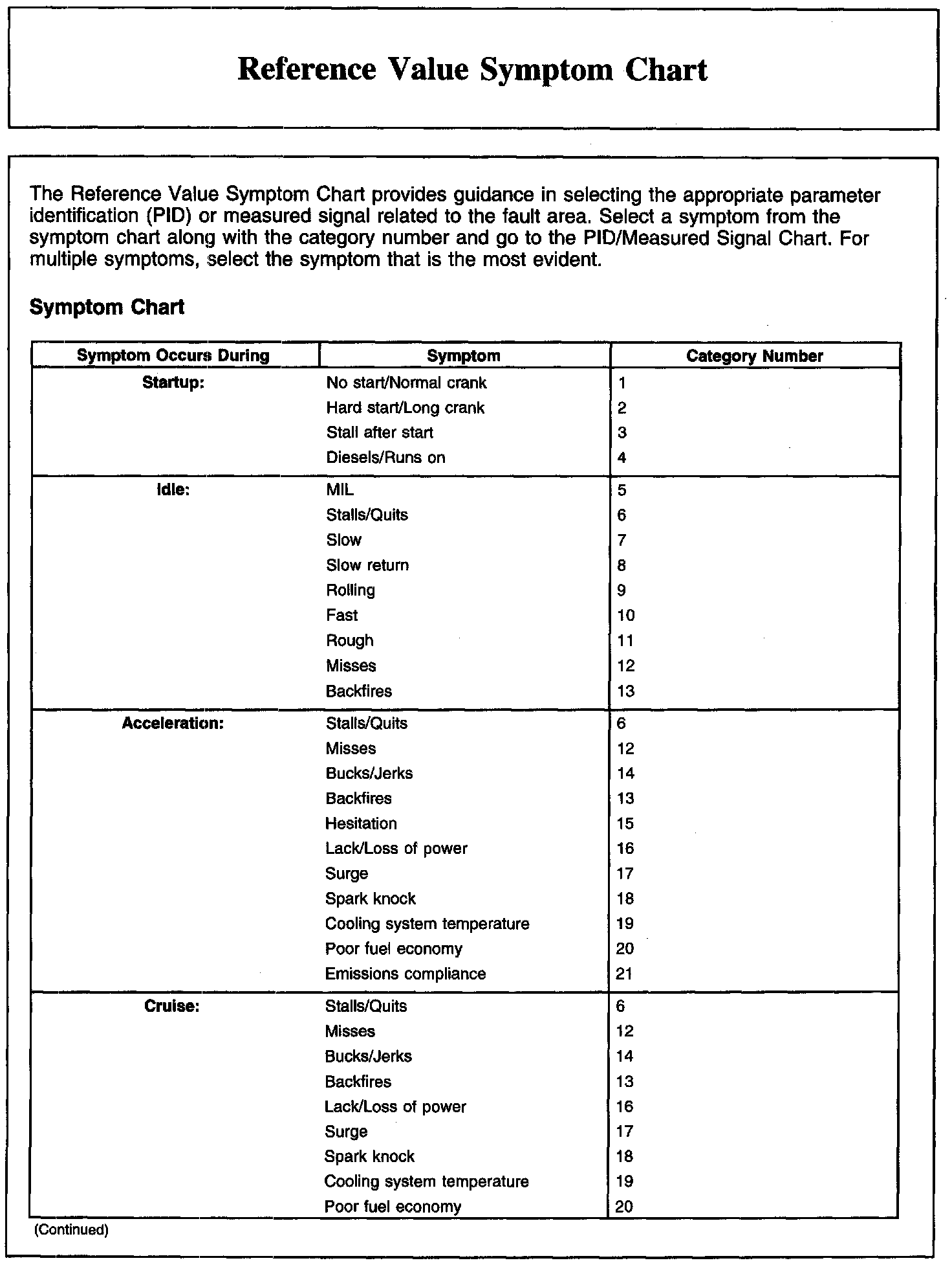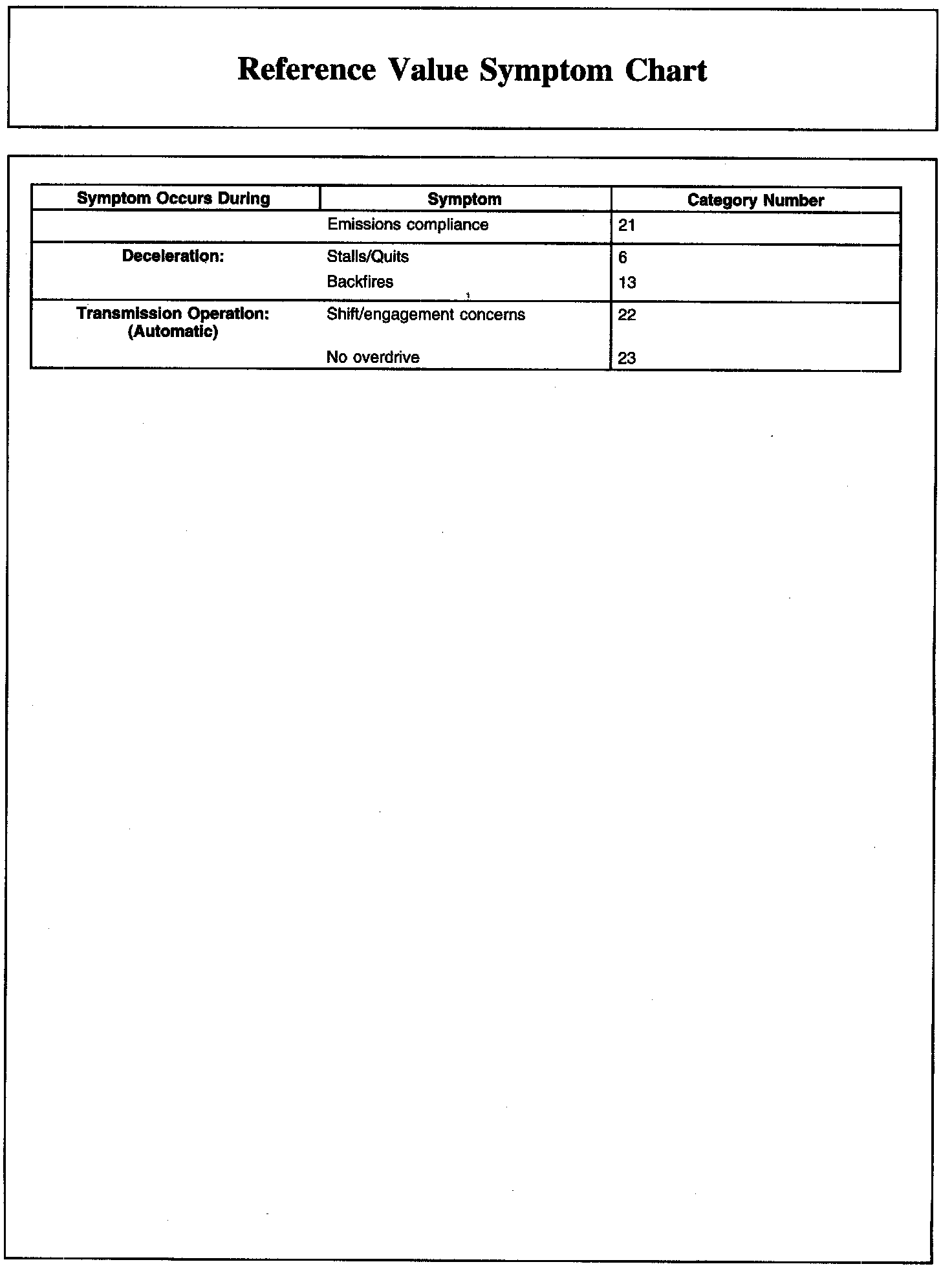 REFERENCE VALUE SYMPTOM CHART