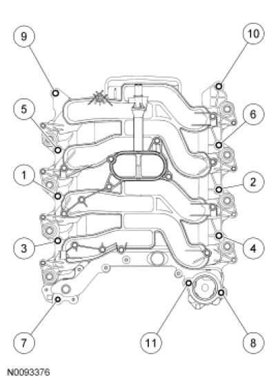 Tighten the 11 bolts in 2 stages in the sequence shown.