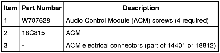 NOTE: It is not necessary to remove the Audio Control Module (ACM) to retrieve the part number. For additional information, refer to Audio Control Module (ACM) Self-Diagnostic Mode Audio Control Module (ACM) Self-Diagnostic Mode.
