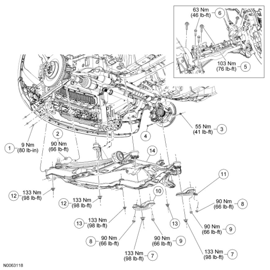 NOTICE: Suspension and subframe fasteners are critical parts because they affect performance of vital parts and systems and their failure may result in major service expense. A new part with the same part number must be installed if installation becomes necessary. Do not use a replacement part of lesser quality or substitute design. Torque values must be used as specified during reassembly to make sure of correct retention of these parts.