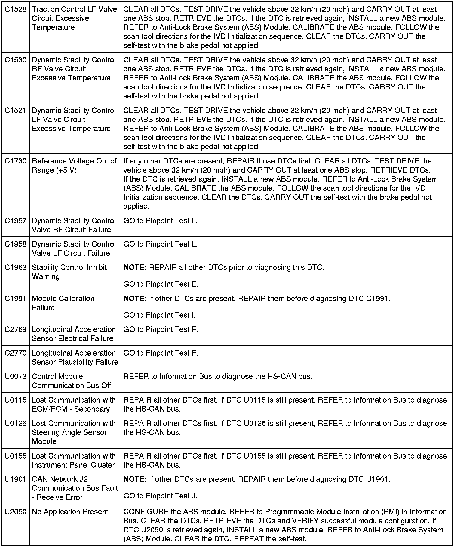ABS Module DTC Chart