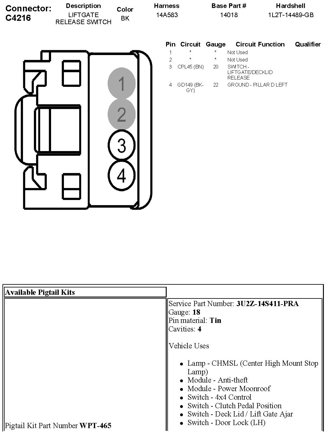 Trunk / Liftgate Switch