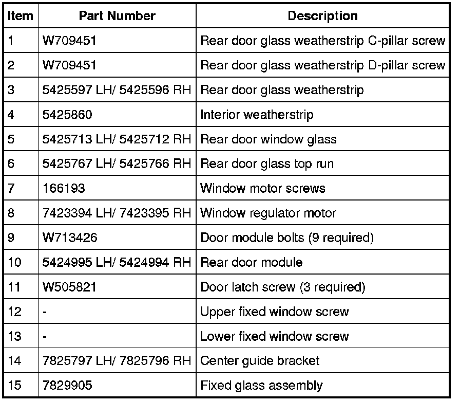 Glass, Frames and Mechanisms - Exploded View, Rear Door