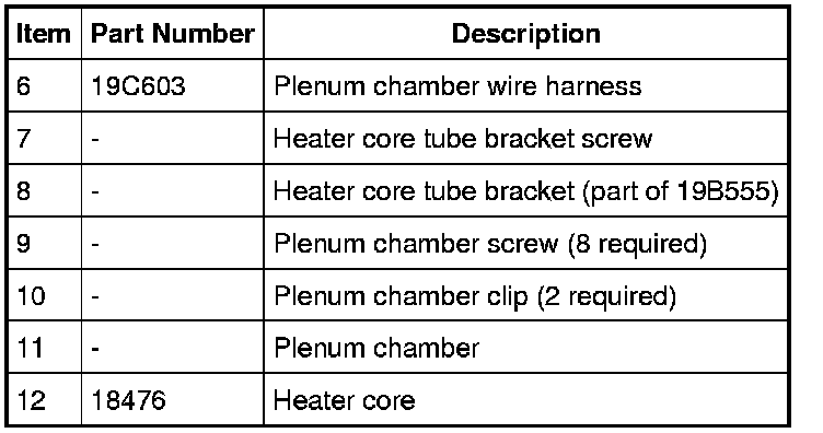10. Remove the 2 plenum chamber clips and remove the plenum chamber being careful not to allow the evaporator core to become dislodged from the installed position.