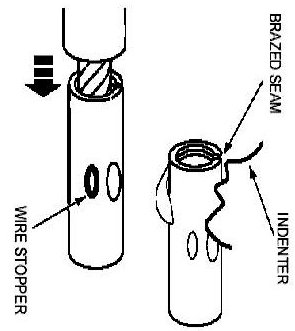 7. If visible, be sure to place the brazed seam toward the indenter.