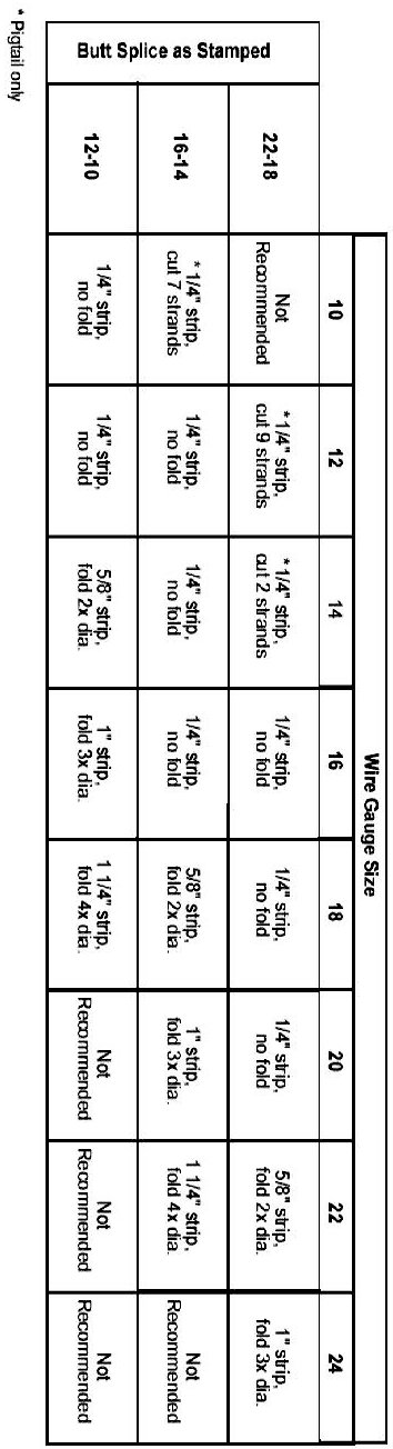 Recommended splicing method - Crimp (For 10-22 AWG Diameter Wire to Like Wire Diameter)