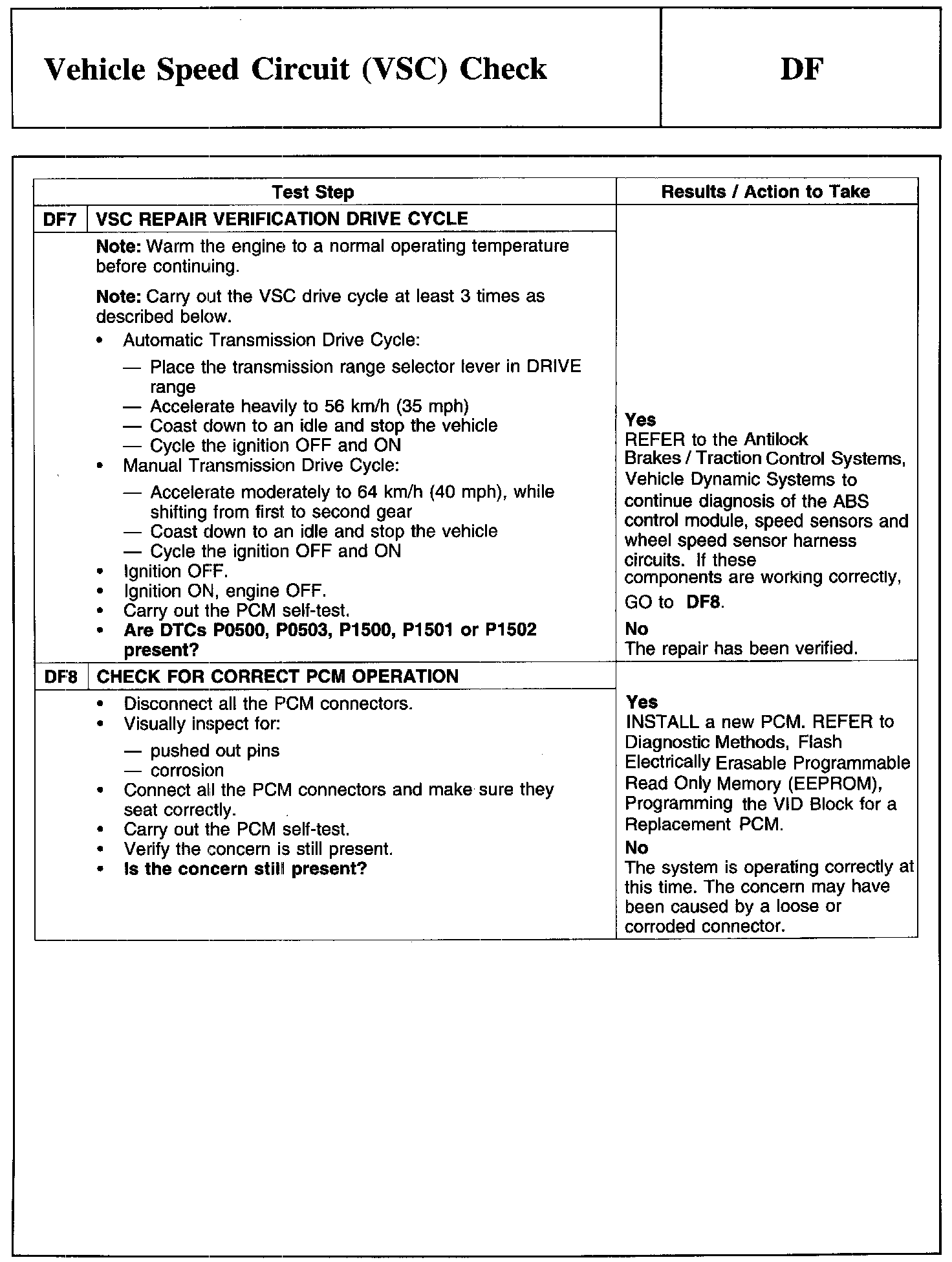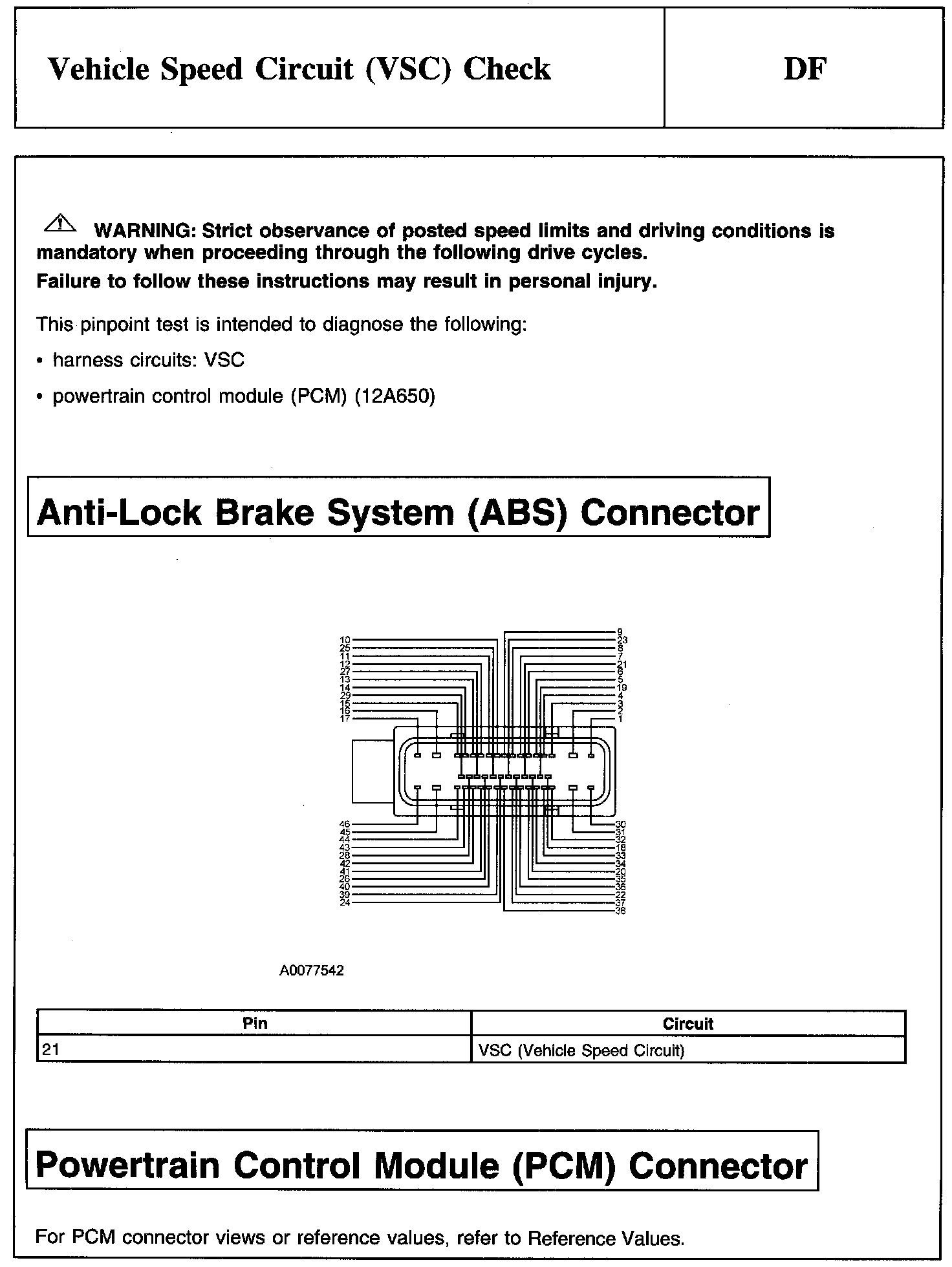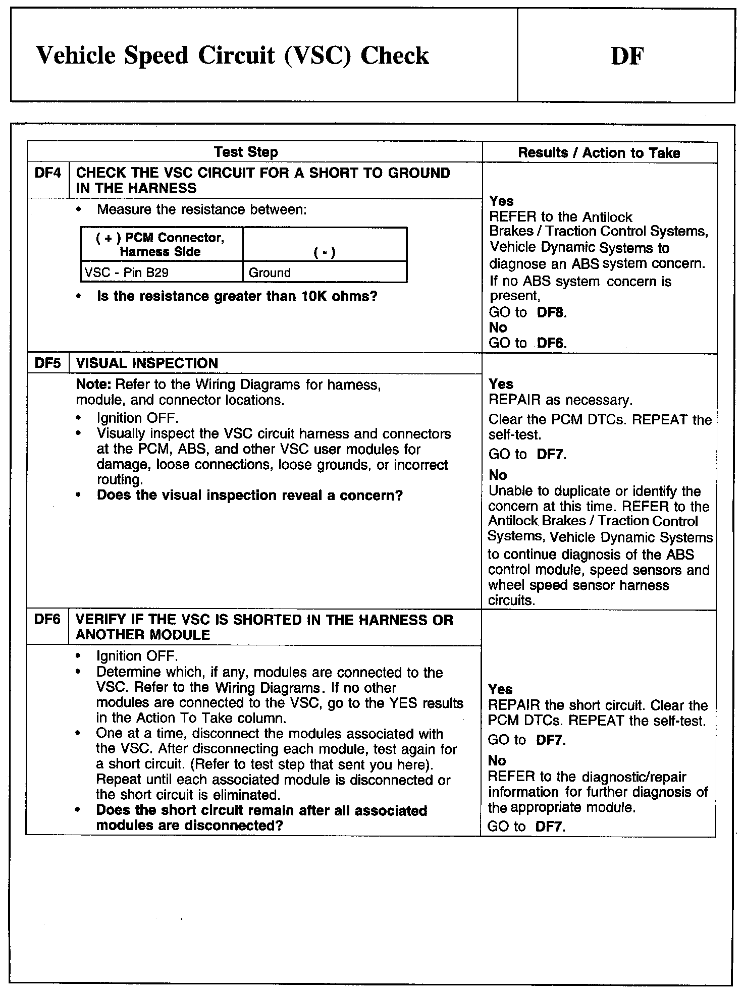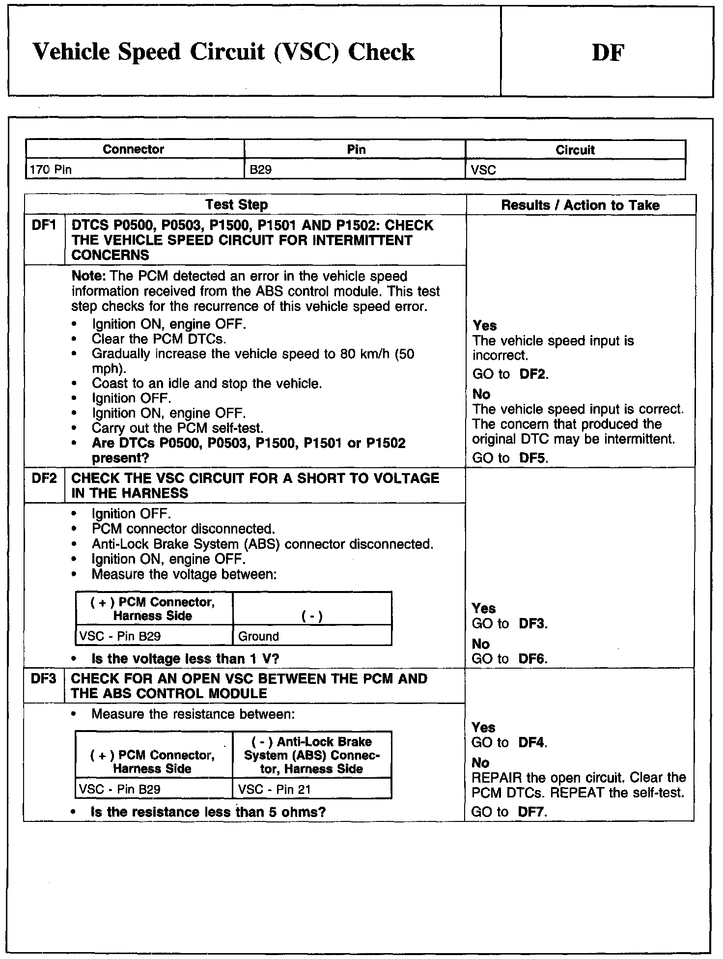 Test DF: Vehicle Speed Circuit (VSC) Check